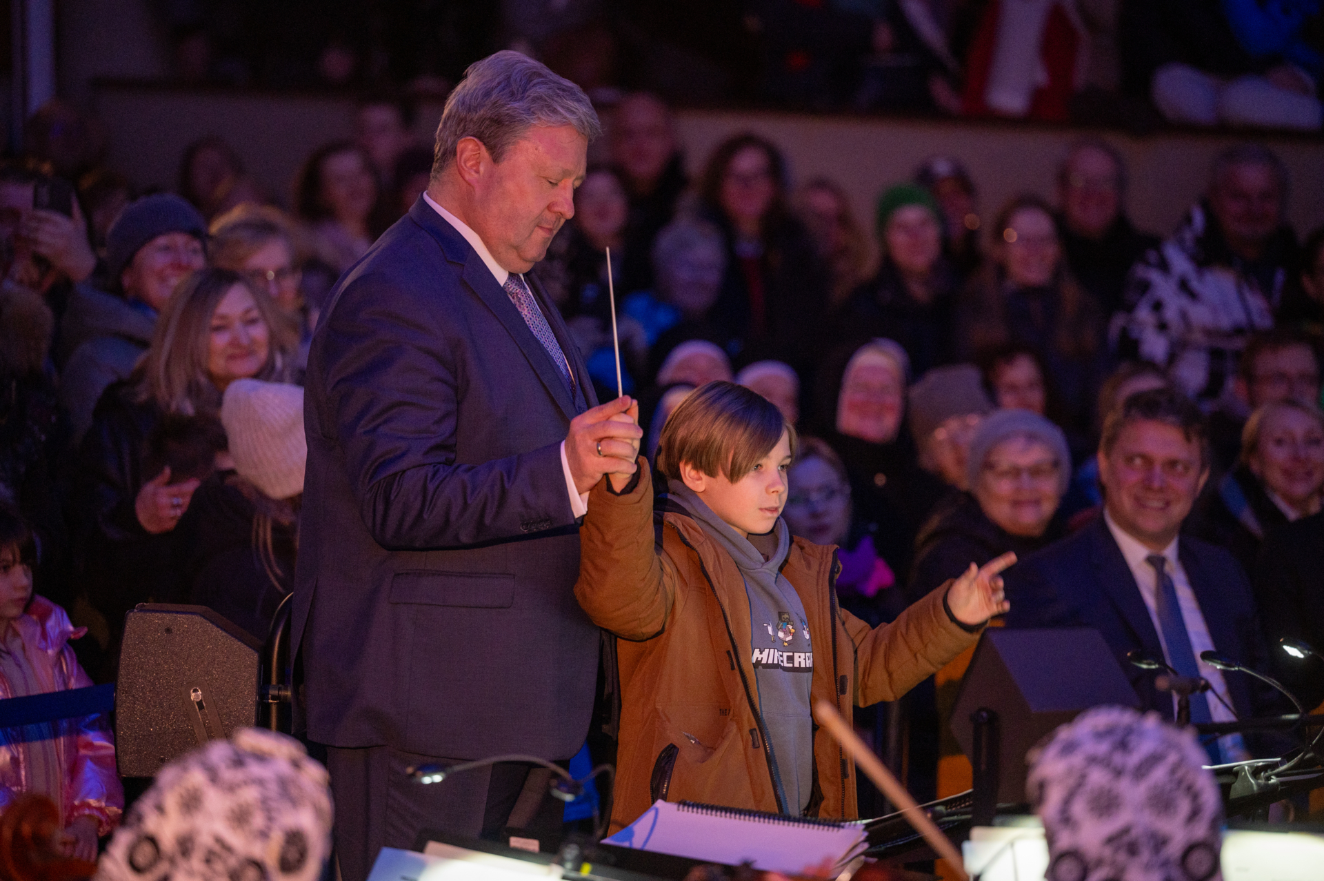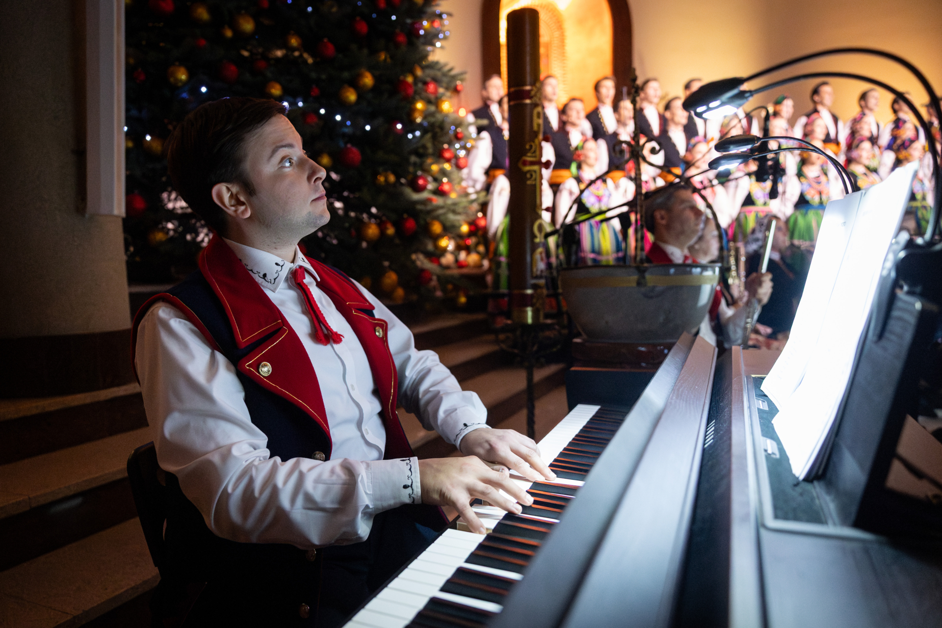 Z niezwykłą odwagą podjął wyzwanie rzucone przez maestro Jacka Bonieckiego i pod jego czujnym okiem stanął za pulpitem dyrygenckim i poprowadził zespół, dyrygując jedną z kolęd. Jesteśmy przekonani, że ten moment pozostanie w sercu Alexa na zawsze, a kto wie, być może kiedyś zwiąże swoje zawodowe życie z dyrygenturą?