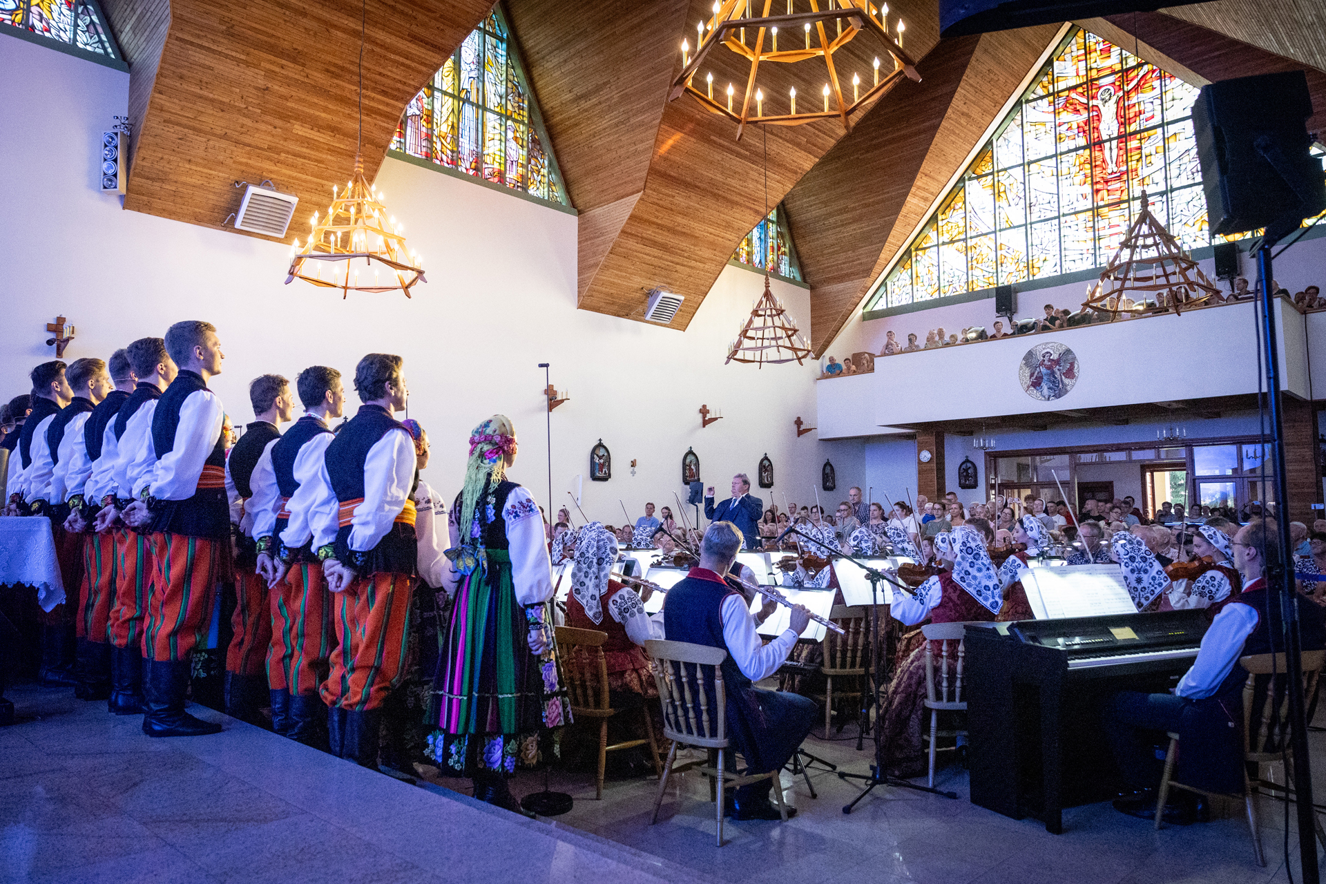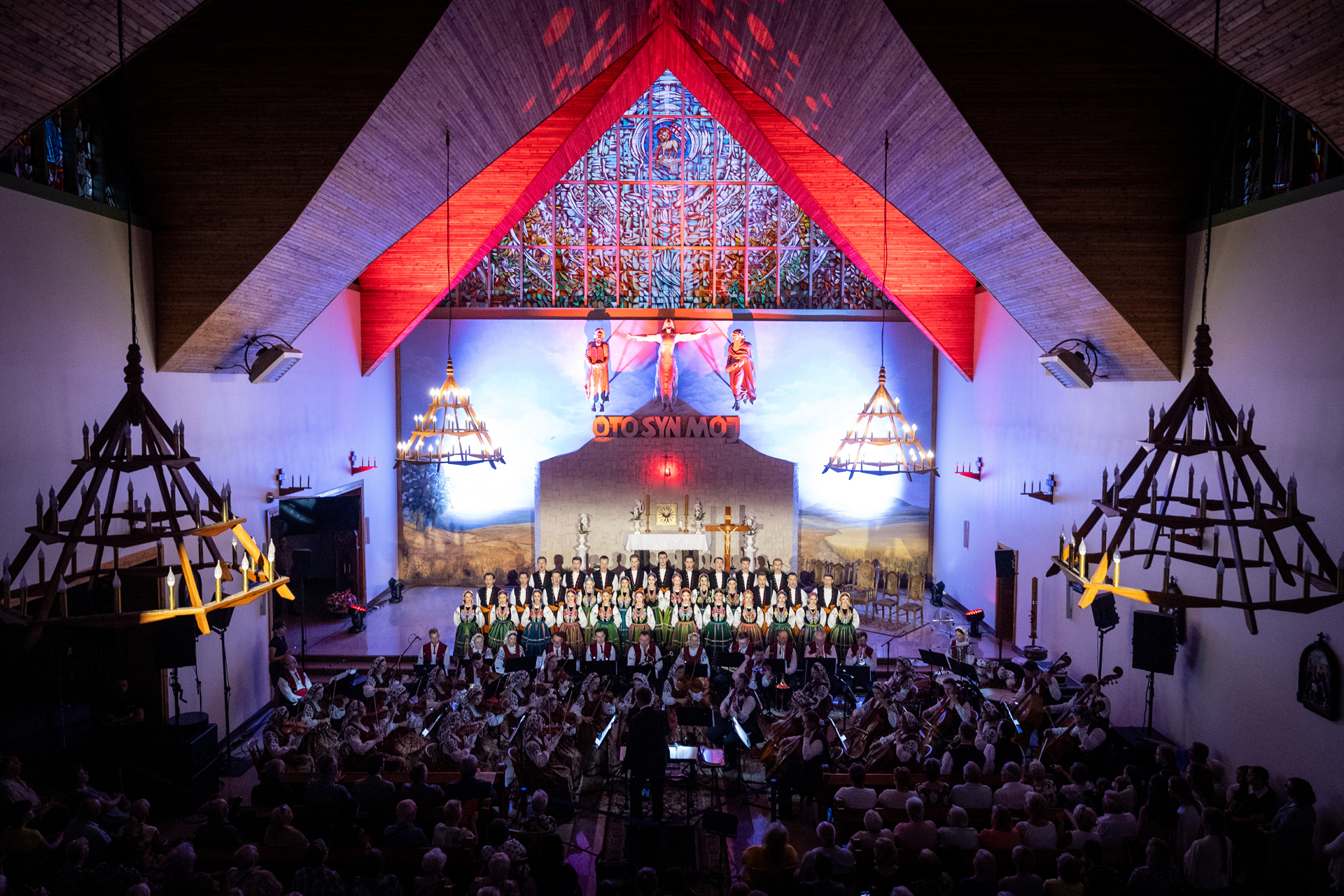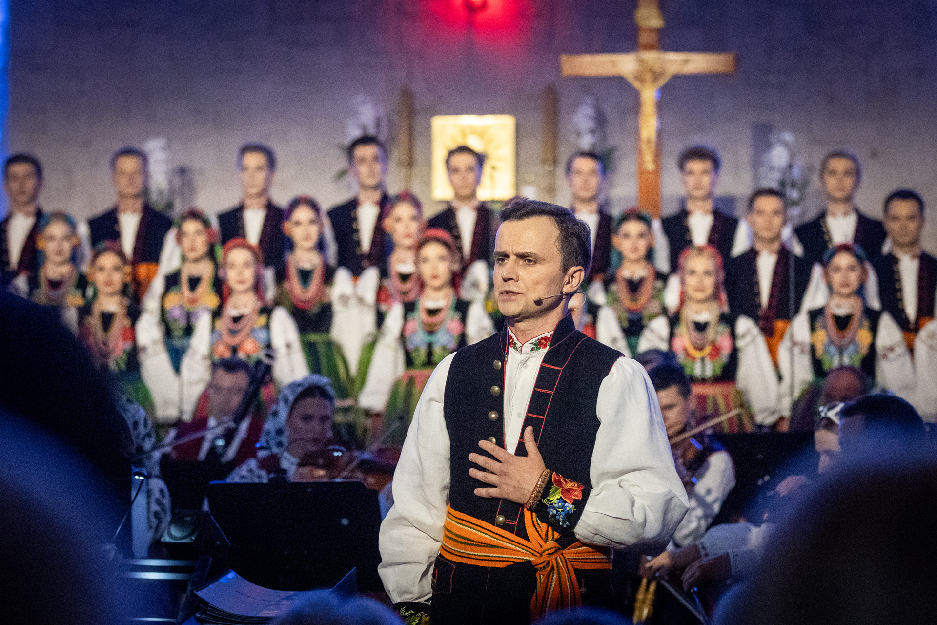 Soliści, chór i orkiestra zespołu "Mazowsze", pod dyrekcją Jacka Bonieckiego i Wojciecha Gwiszcza, wykonali najpiękniejsze utwory sakralne i patriotyczne z repertuaru zespołu.