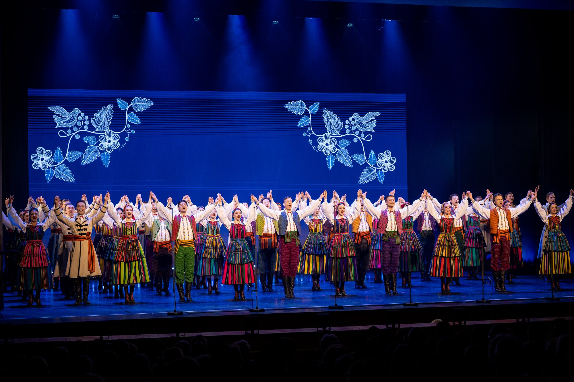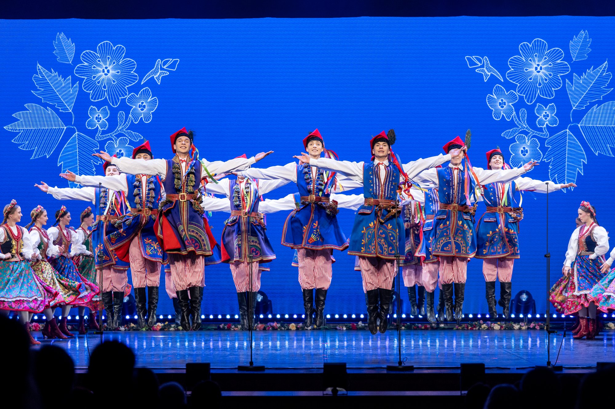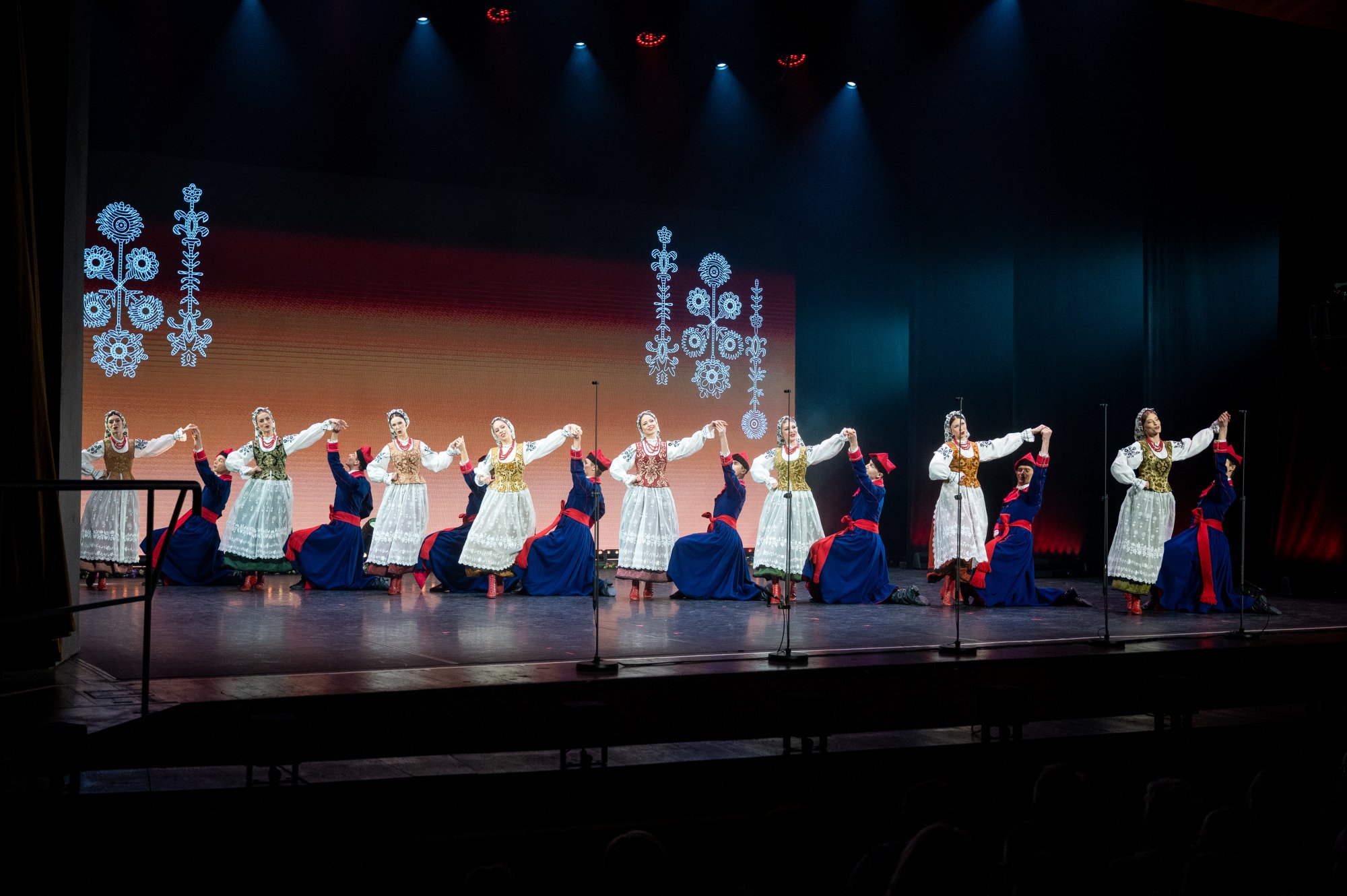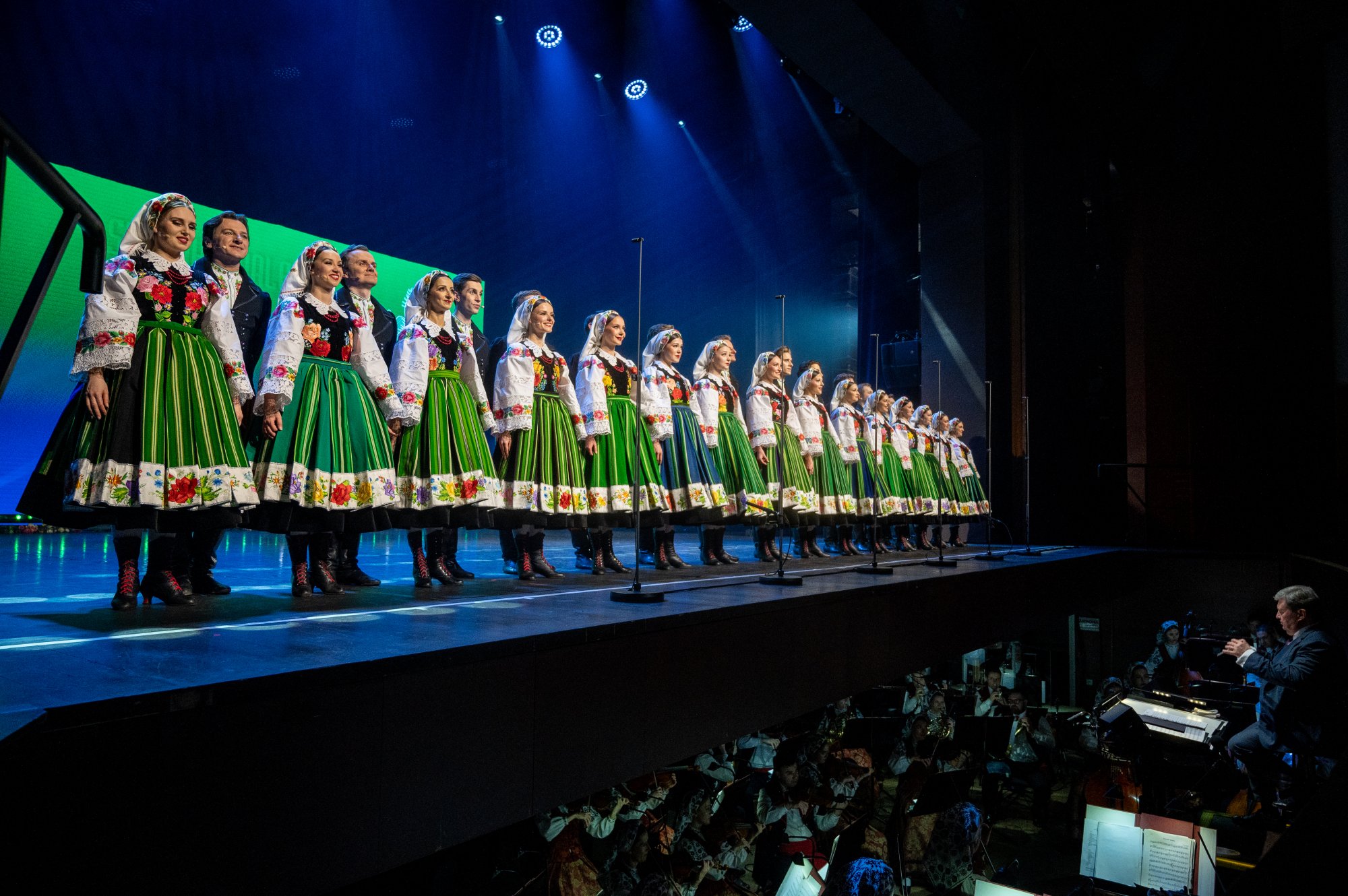 Po tej wyjątkowej chwili scena należała już do zespołu „Mazowsze”. Publiczność opuszczała naszą siedzibę zachwycona muzyką orkiestry pod dyrekcją maestro Jacka Bonieckiego, pełnymi pasji i energii suitami tanecznymi w wykonaniu baletu oraz pieśniami mazowszańskiego chóru, słynącego z pastelowego, niepowtarzalnego brzmienia.