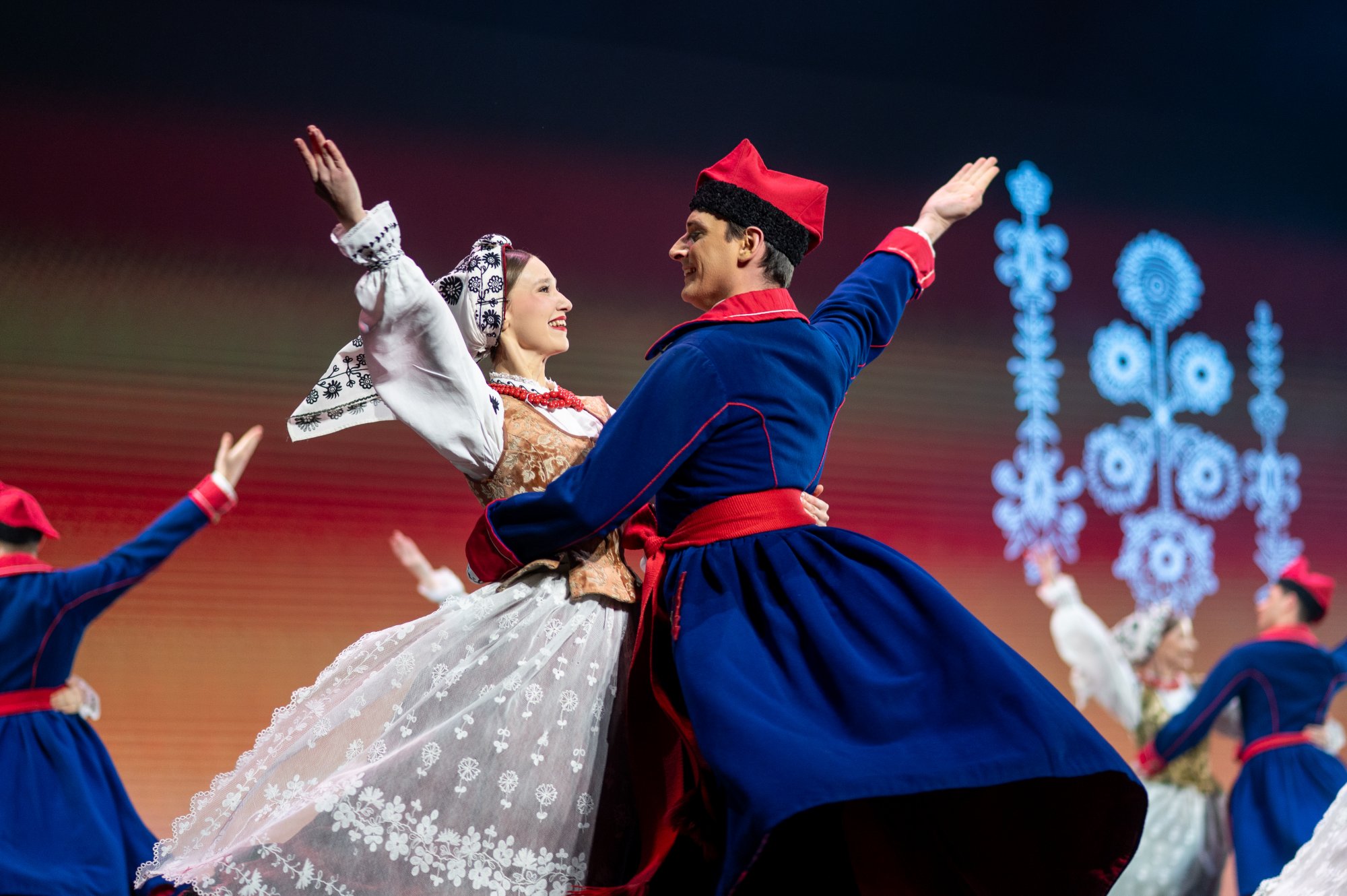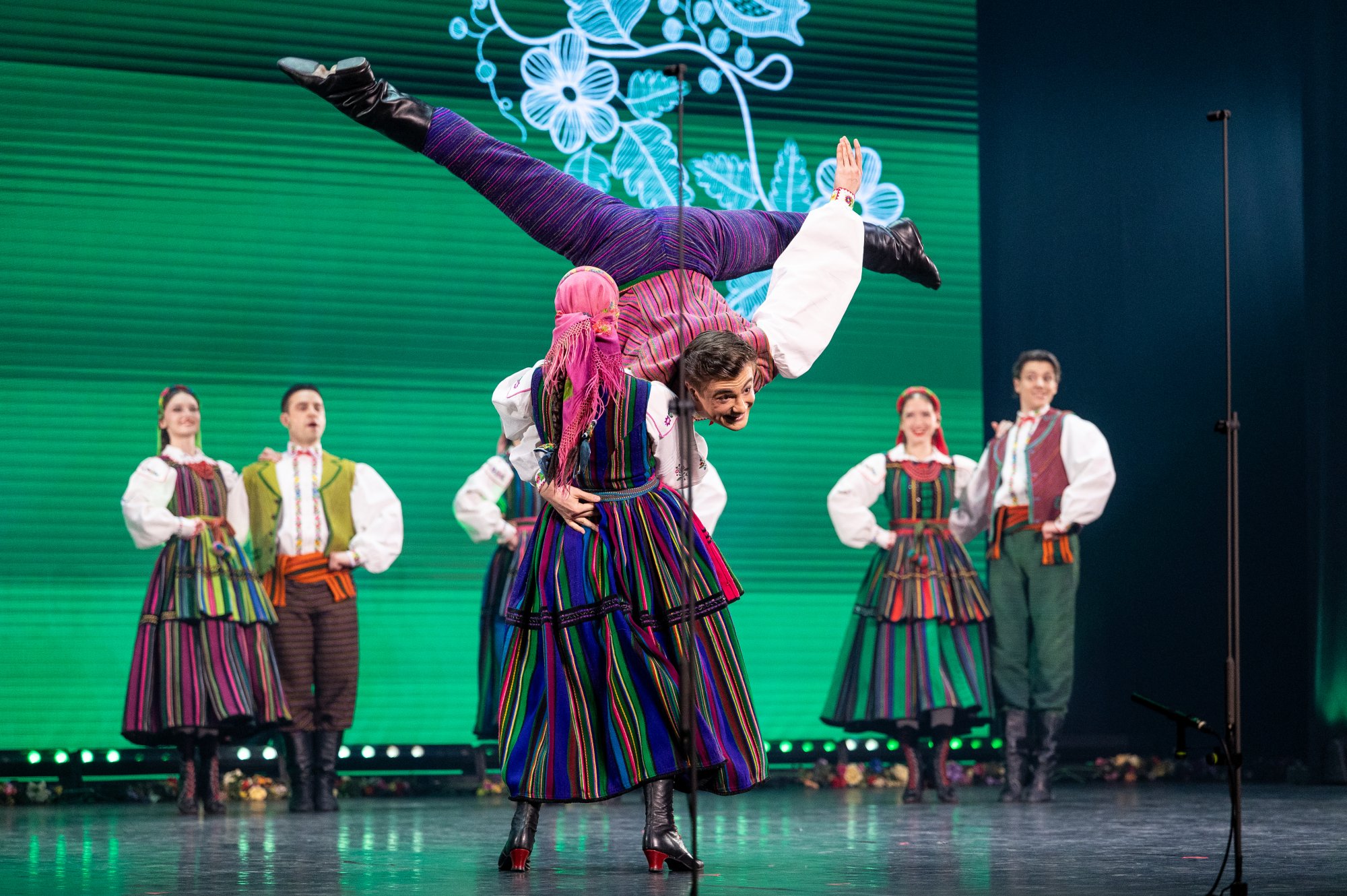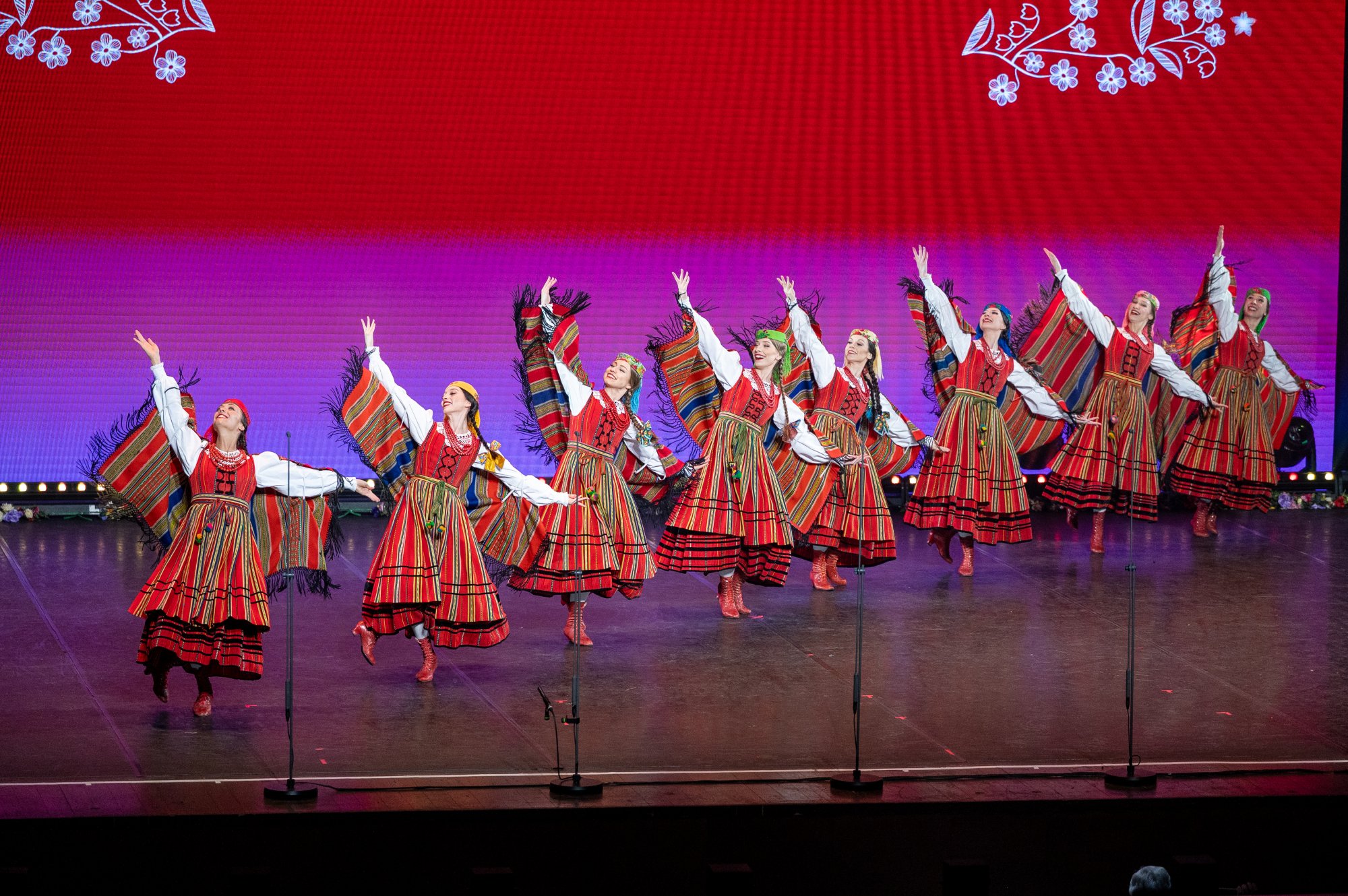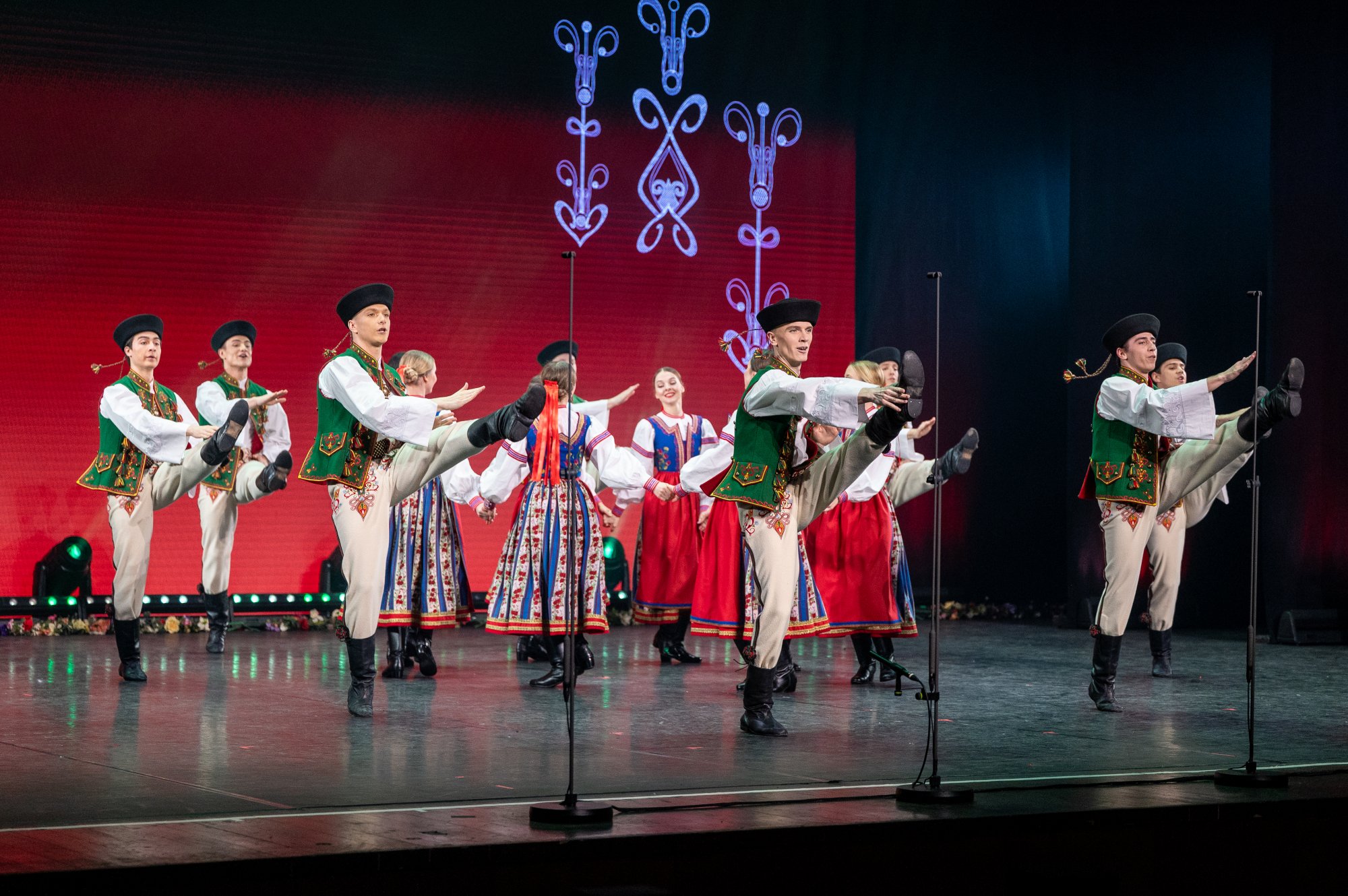 Po tej wyjątkowej chwili scena należała już do zespołu „Mazowsze”. Publiczność opuszczała naszą siedzibę zachwycona muzyką orkiestry pod dyrekcją maestro Jacka Bonieckiego, pełnymi pasji i energii suitami tanecznymi w wykonaniu baletu oraz pieśniami mazowszańskiego chóru, słynącego z pastelowego, niepowtarzalnego brzmienia.