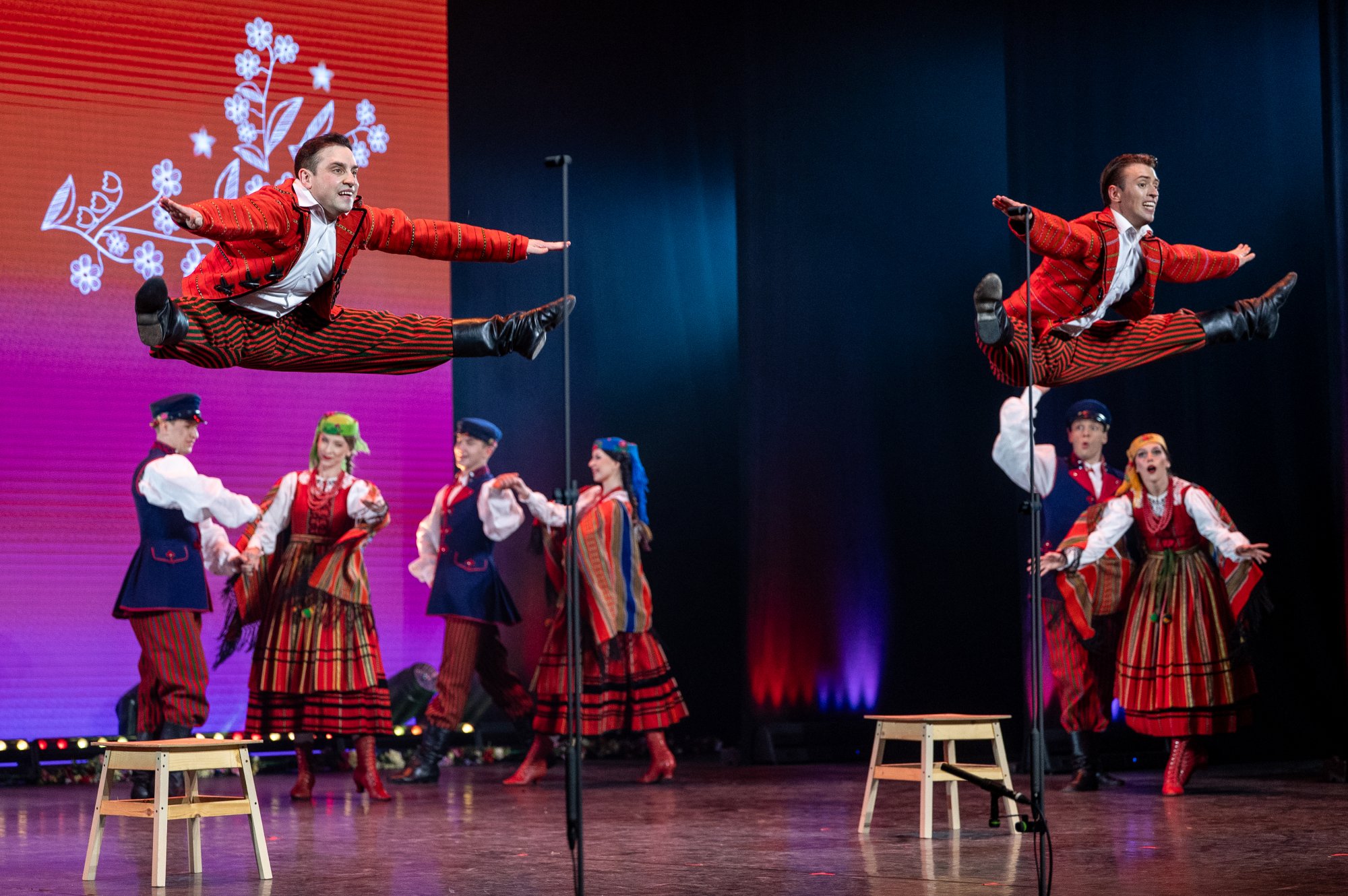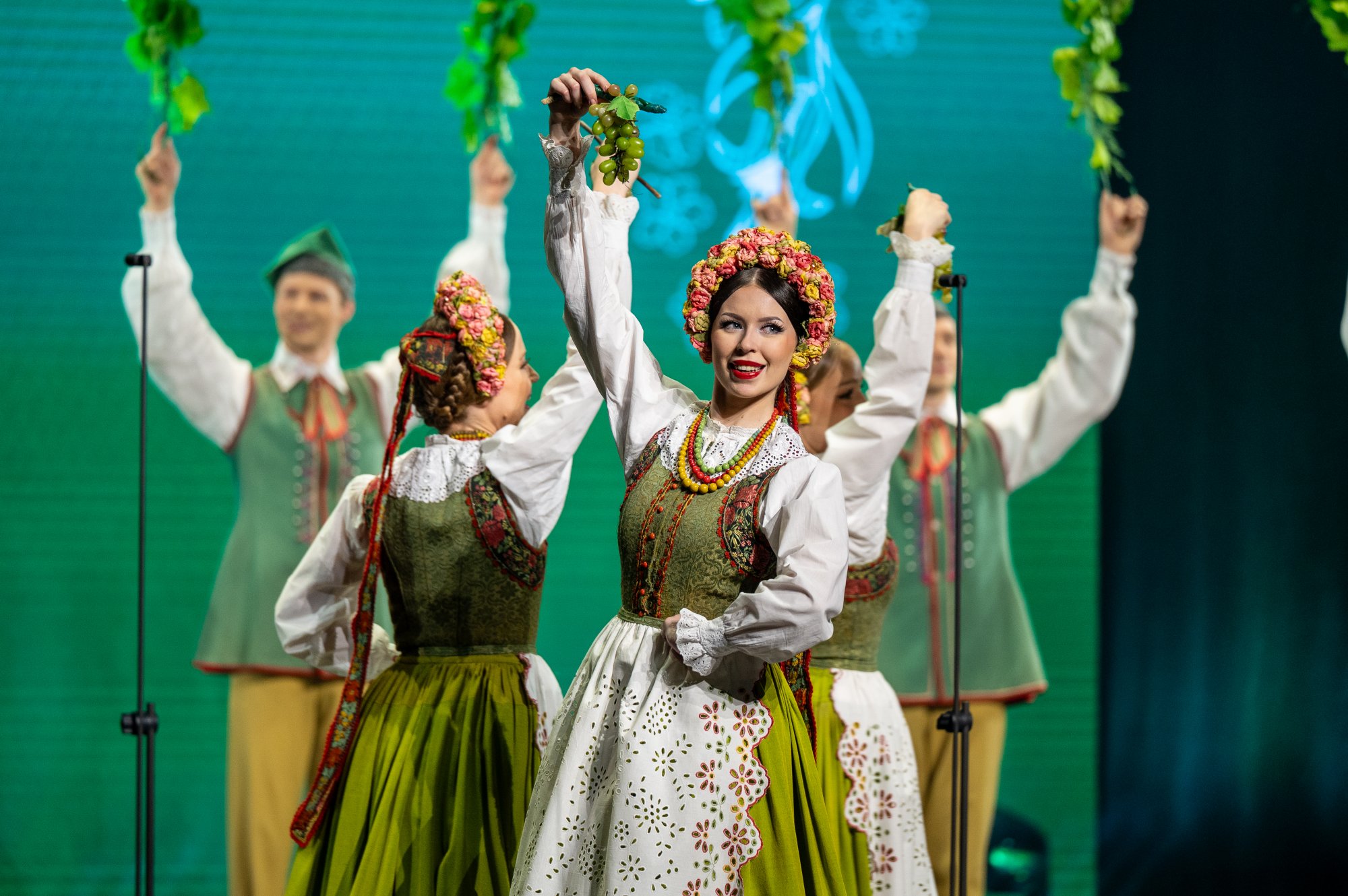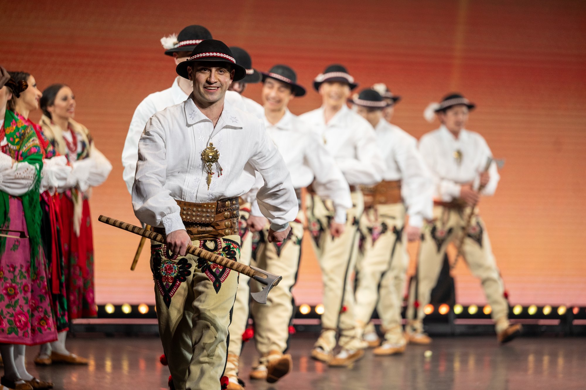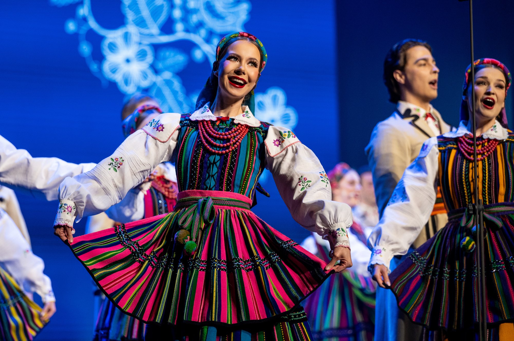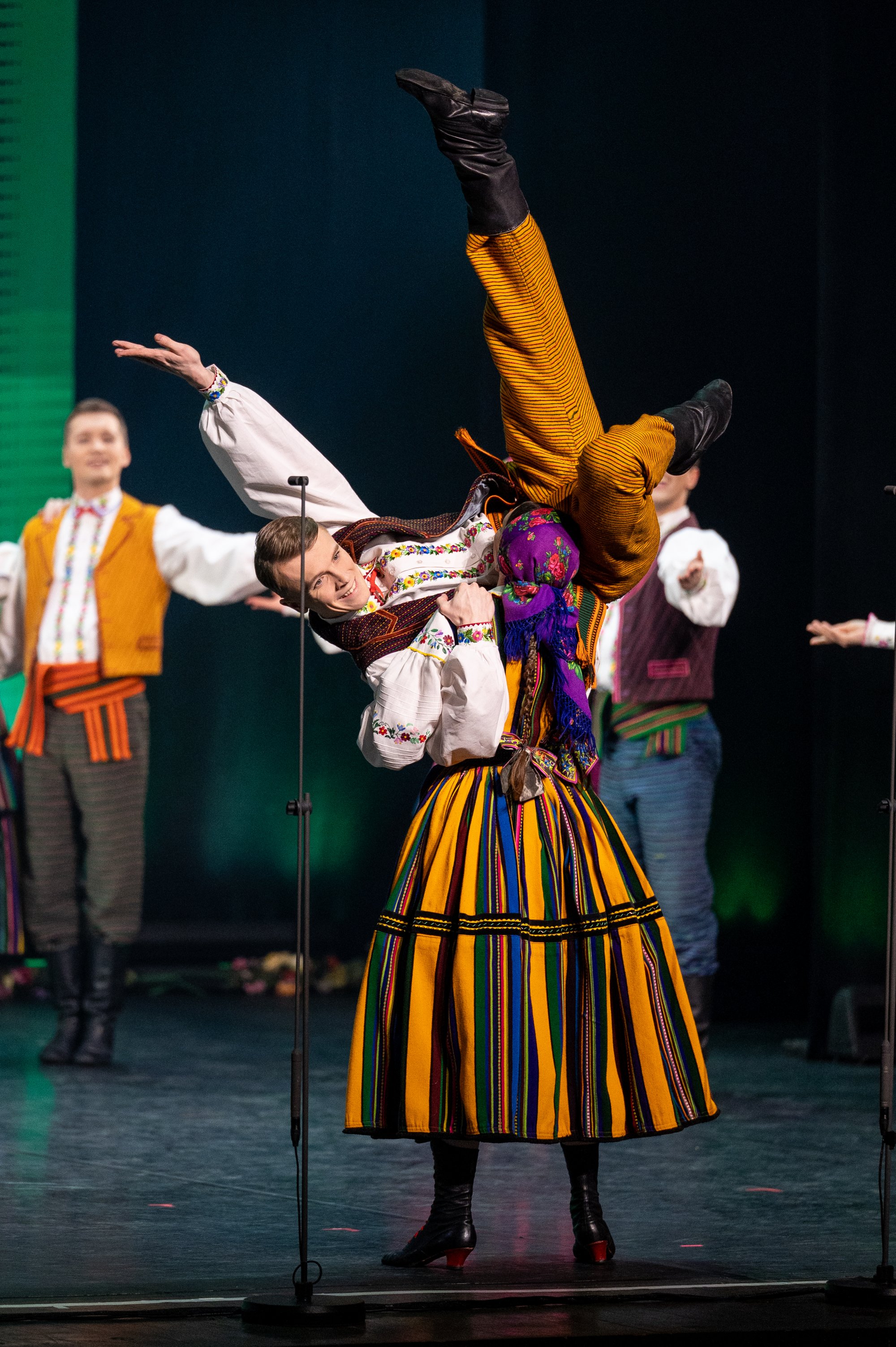 Po tej wyjątkowej chwili scena należała już do zespołu „Mazowsze”. Publiczność opuszczała naszą siedzibę zachwycona muzyką orkiestry pod dyrekcją maestro Jacka Bonieckiego, pełnymi pasji i energii suitami tanecznymi w wykonaniu baletu oraz pieśniami mazowszańskiego chóru, słynącego z pastelowego, niepowtarzalnego brzmienia.