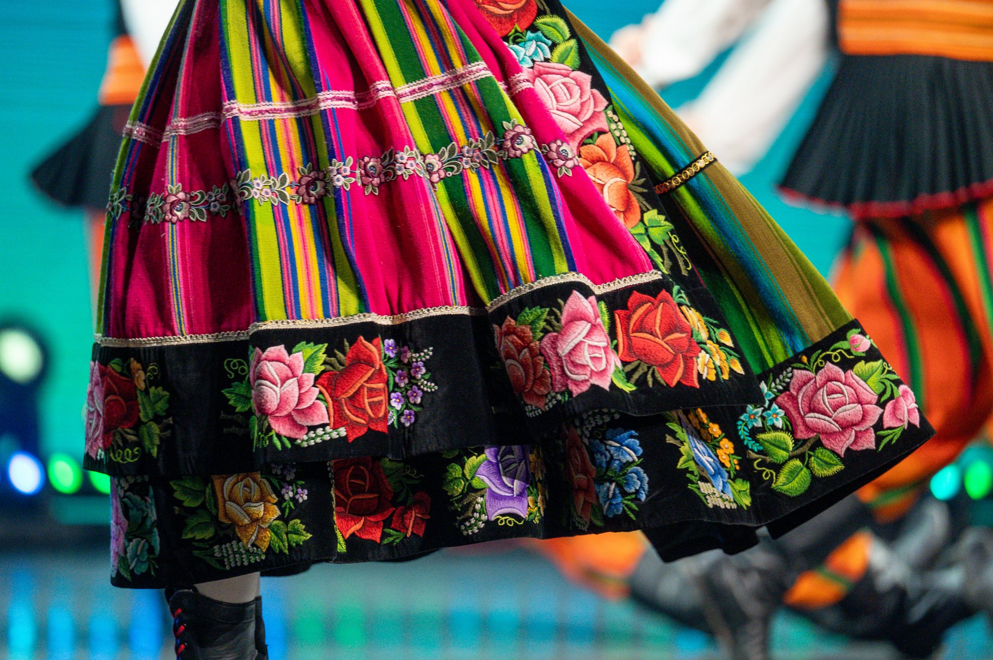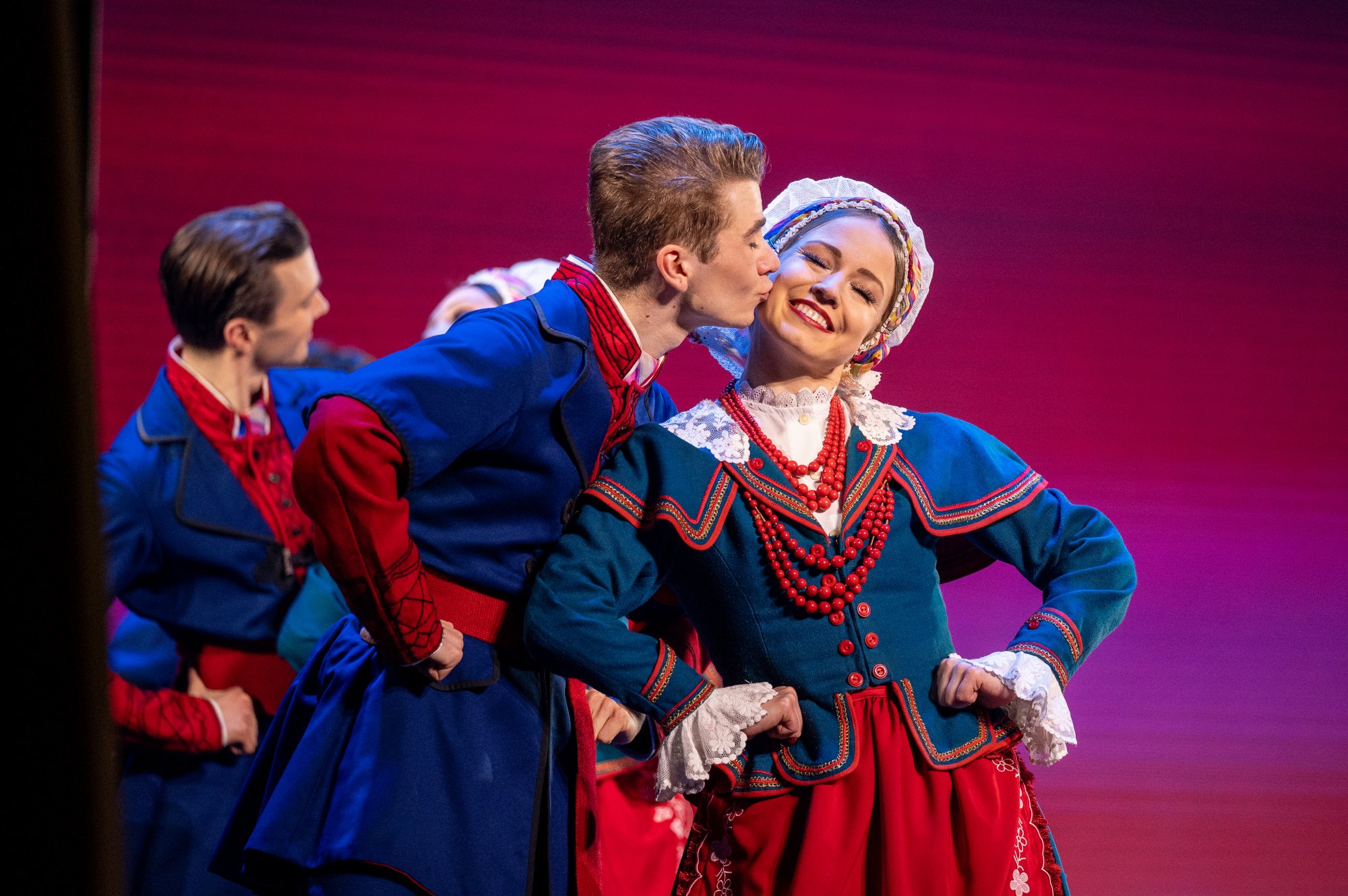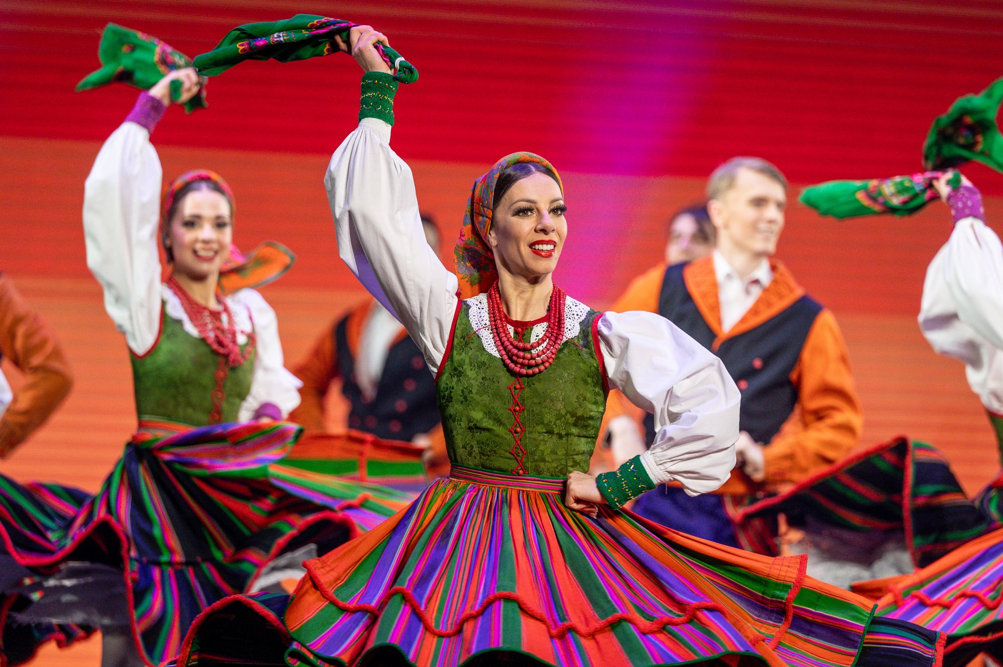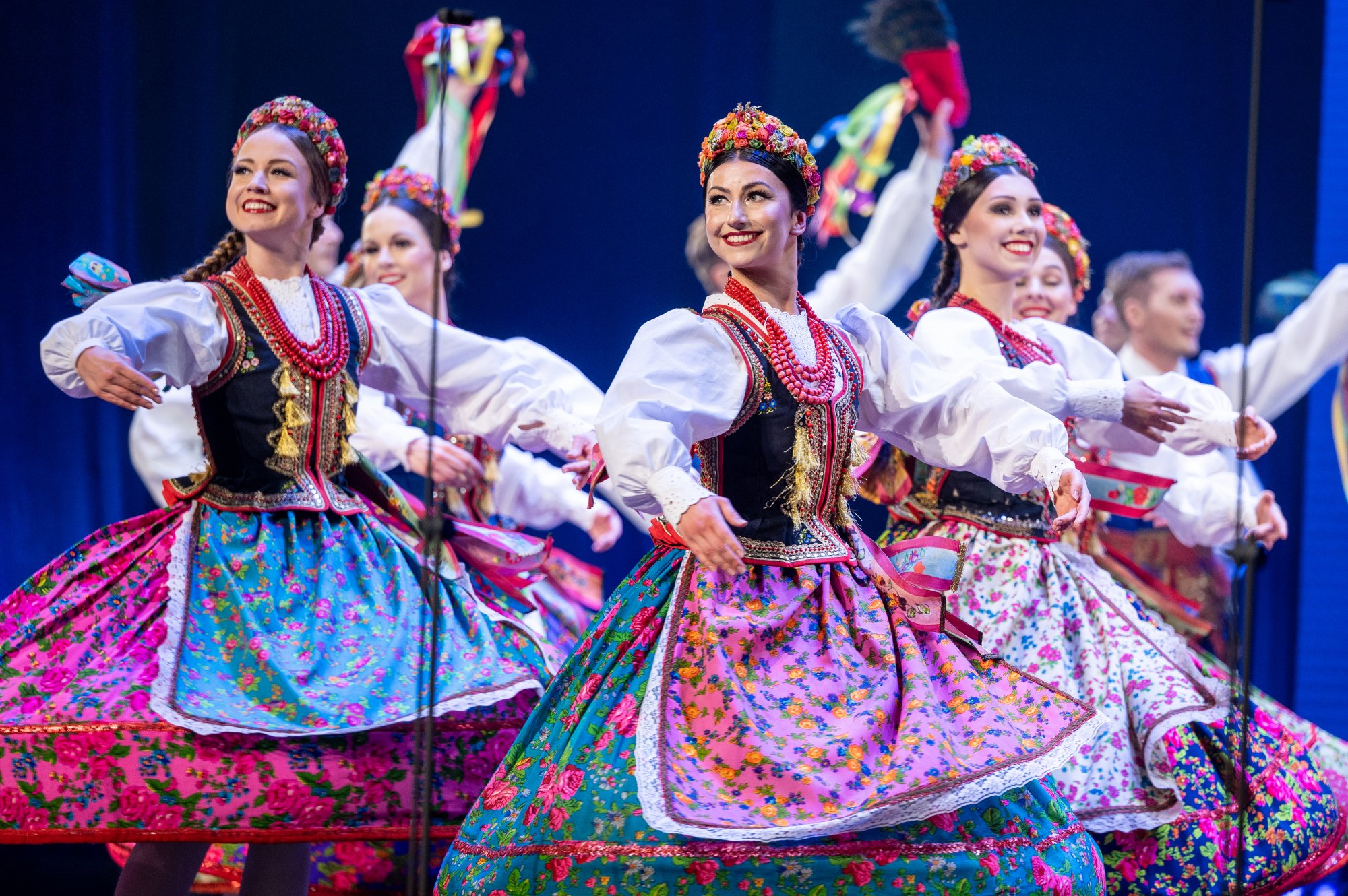 Po tej wyjątkowej chwili scena należała już do zespołu „Mazowsze”. Publiczność opuszczała naszą siedzibę zachwycona muzyką orkiestry pod dyrekcją maestro Jacka Bonieckiego, pełnymi pasji i energii suitami tanecznymi w wykonaniu baletu oraz pieśniami mazowszańskiego chóru, słynącego z pastelowego, niepowtarzalnego brzmienia.