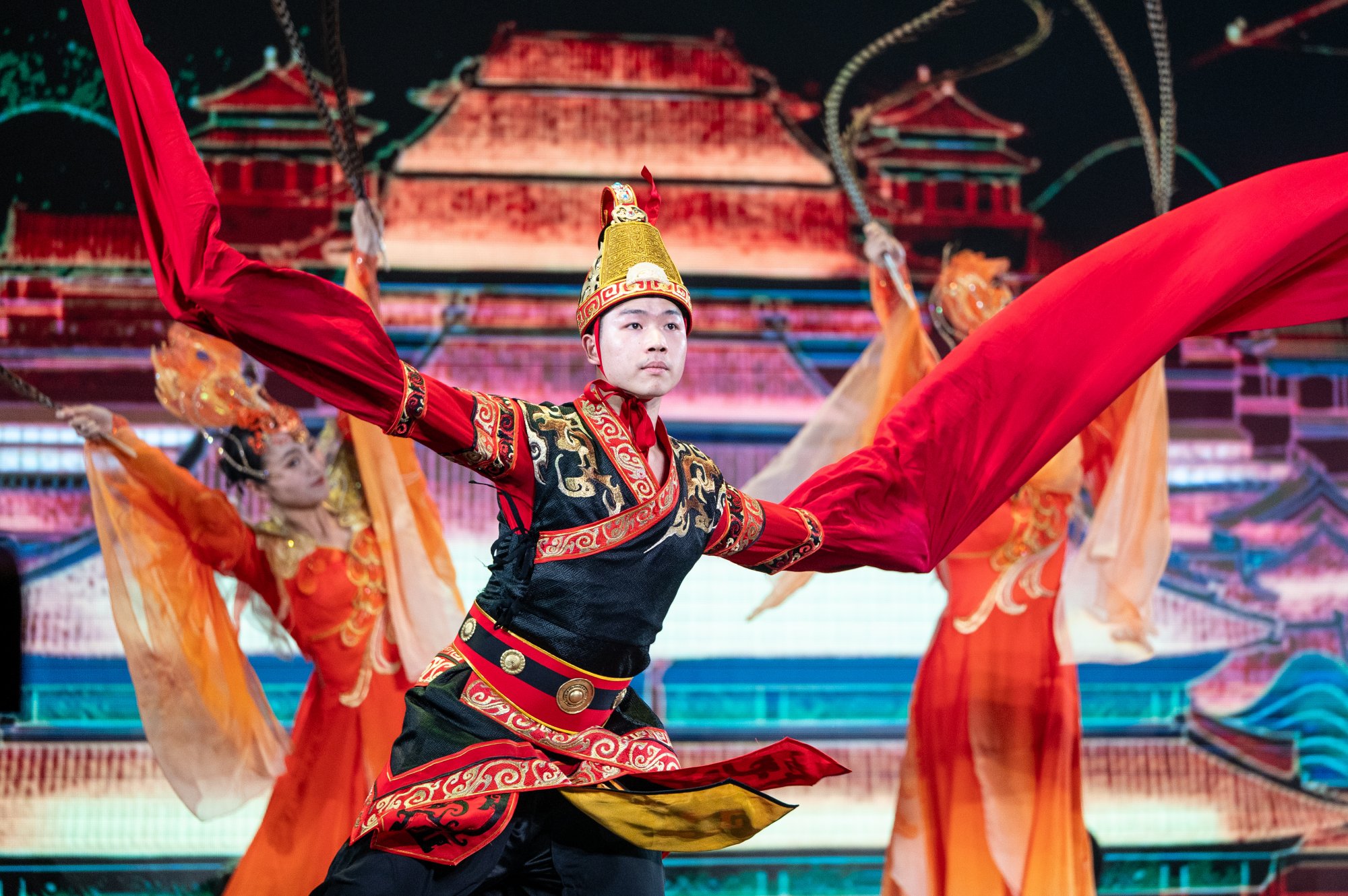 Wczorajszy koncert był szczególny i niepowtarzalny, a to za sprawą niespodzianki, jaką przygotowaliśmy dla Państwa. Zanim zespół „Mazowsze” rozpoczął swój występ, na naszej scenie zaprezentowali się artyści z Chińskiej Republiki Ludowej, którzy dzień wcześniej wystąpili w naszej Sali widowiskowej z koncertem „Magiczny Hubei”, zorganizowanym przez Ministerstwo Kultury i Turystyki Chin oraz Ambasadę Chińskiej Republiki Ludowej w Polsce. Wczoraj Publiczność miała okazję zobaczyć fragment tej niezwykłej twórczości artystycznej. Był to taniec zatytułowany „Feniks tańczy nad ziemią Chu”, który spotkał się z ciepłym przyjęciem.