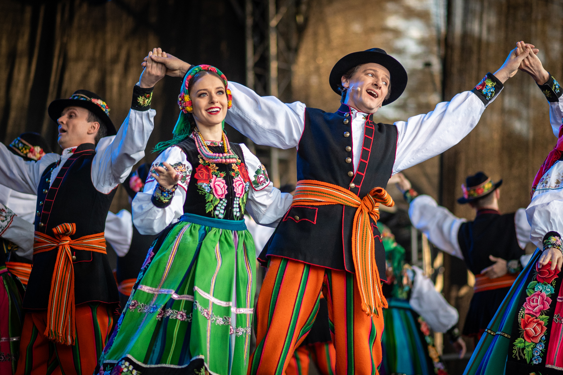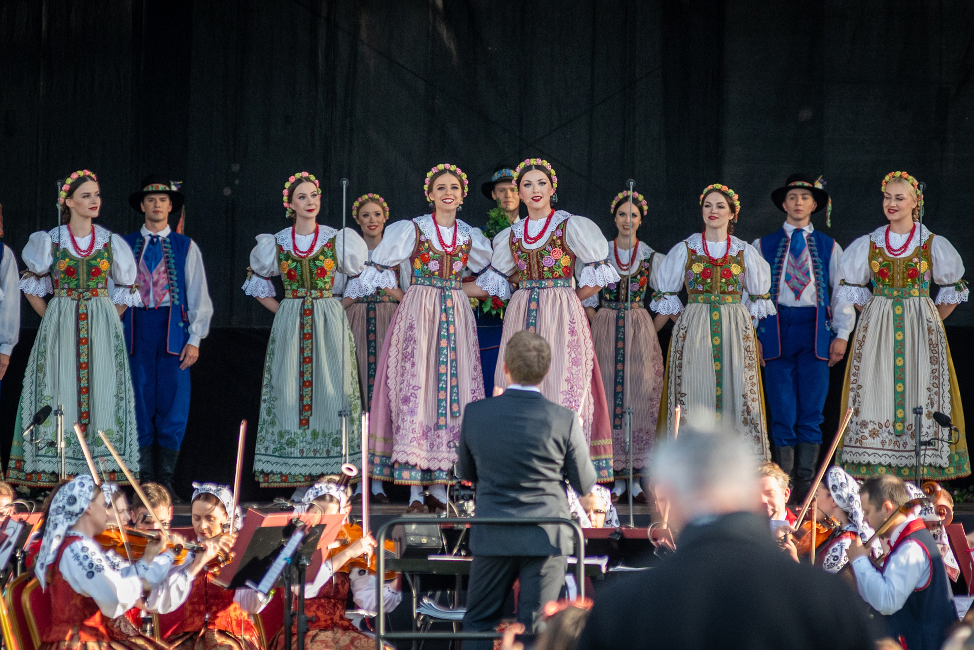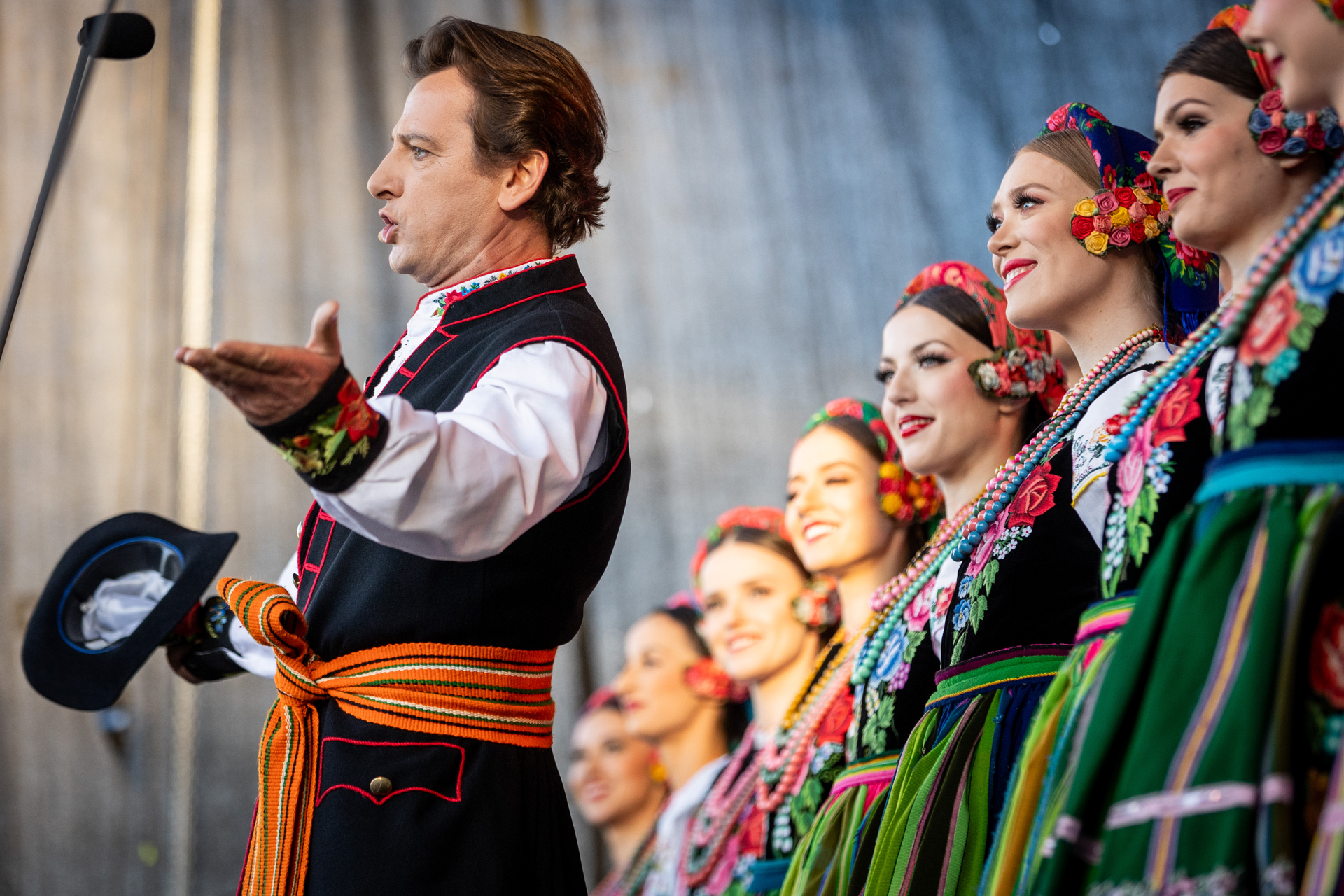 Przed naszym występem publiczność rozgrzała „Orkiestra Kurpiowska”, która była znakomitym przedsmakiem tego, co miało się jeszcze wydarzyć tego wieczoru. Gdy na scenę wkroczyli soliści, chór, balet oraz orkiestra zespołu „Mazowsze”, rozległy się gromkie brawa, które nasilały się z każdym kolejnym utworem. Nasi artyści pod dyrekcją Wojciecha Gwiszcza zaprezentowali „Kalejdoskop Barw Polski”, zabierając wszystkich zgromadzonych w barwną, muzyczną podróż.