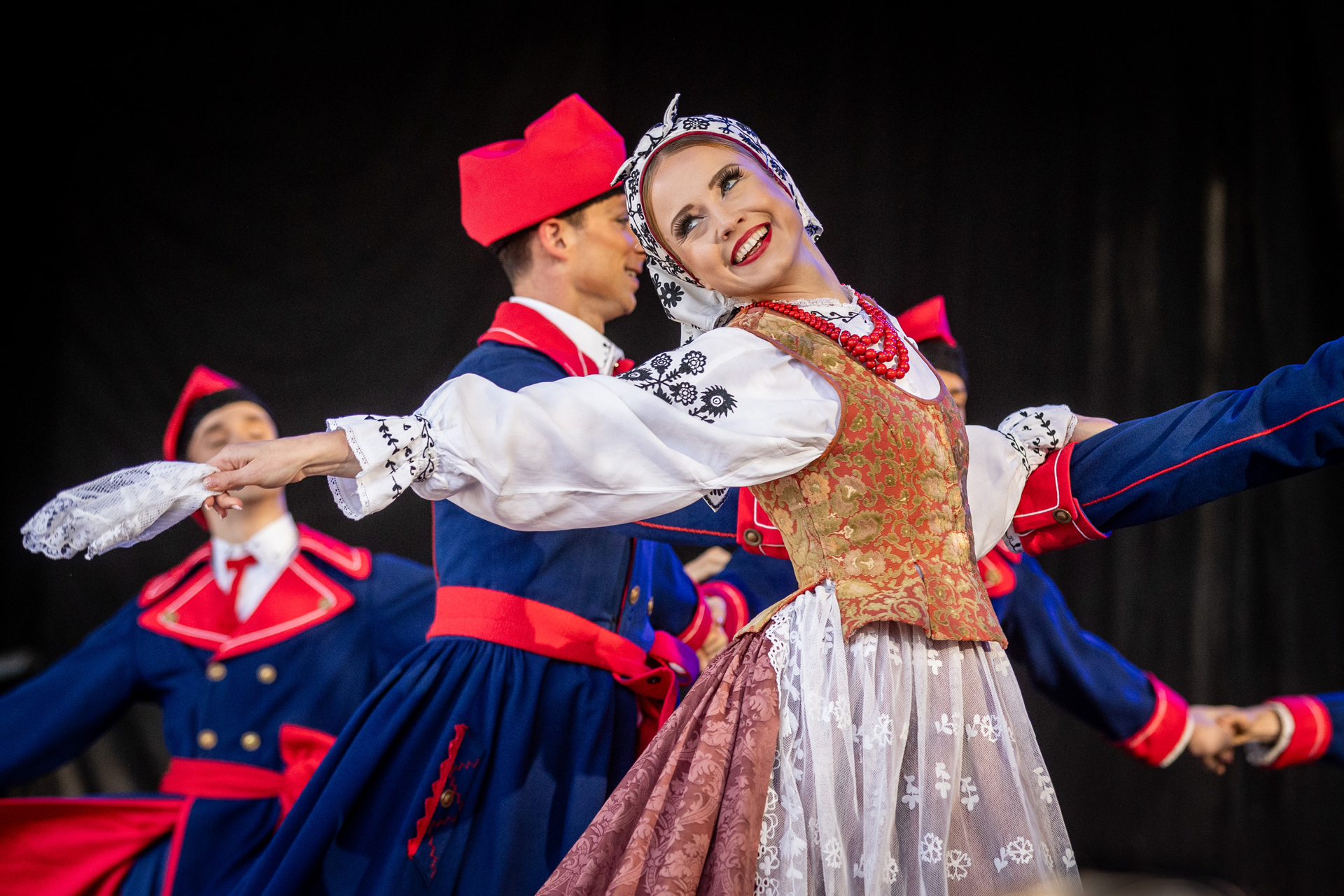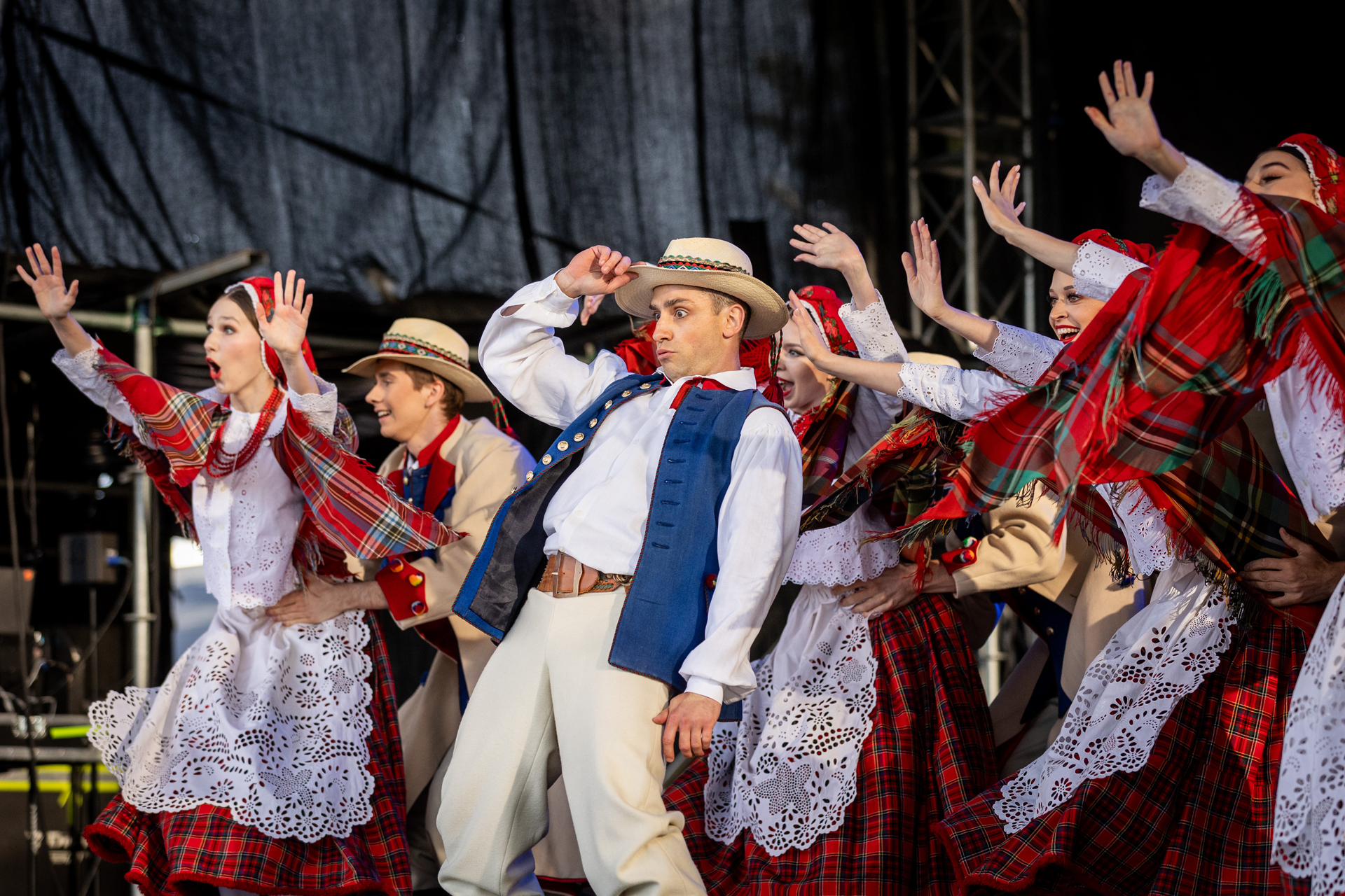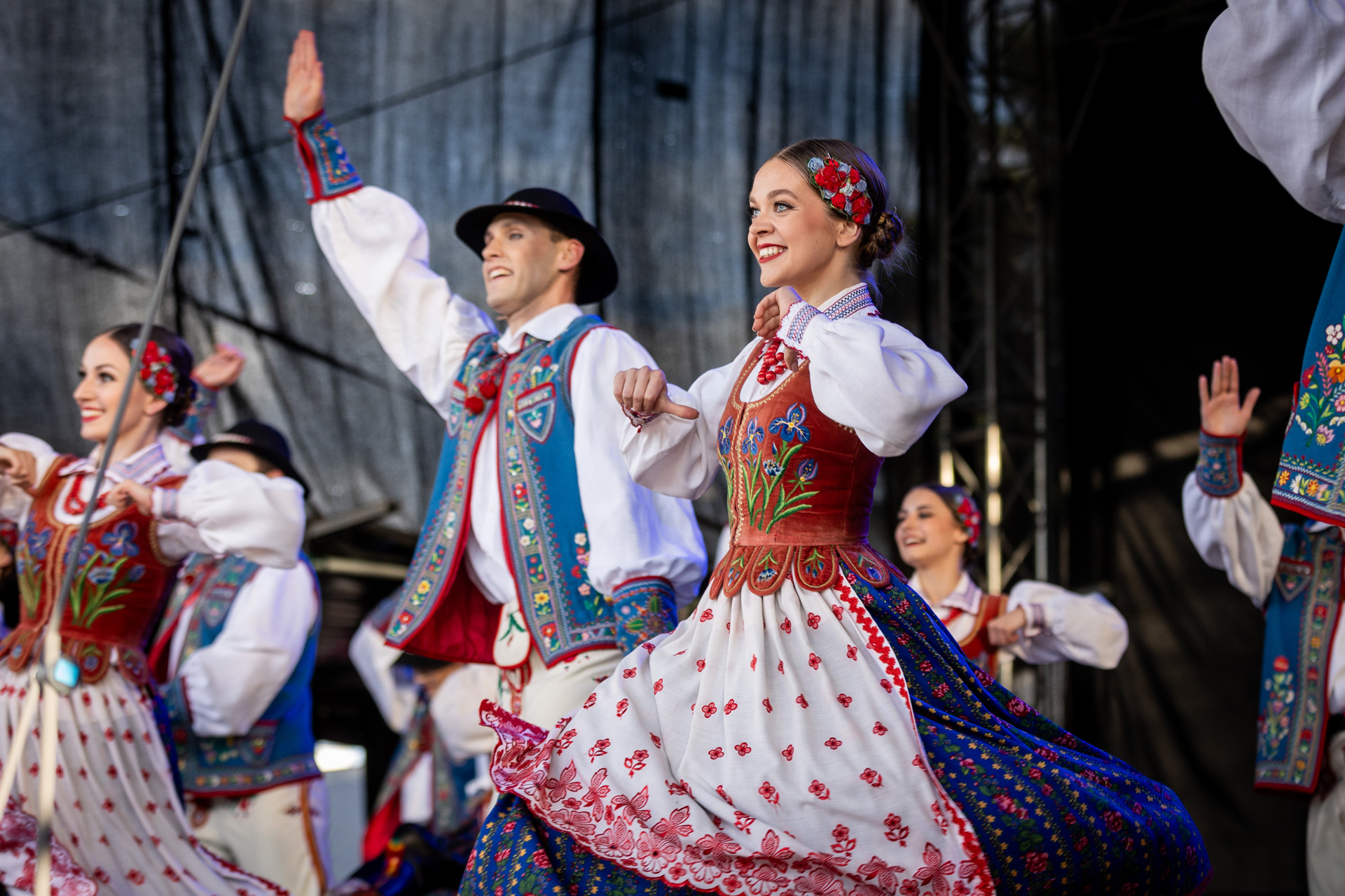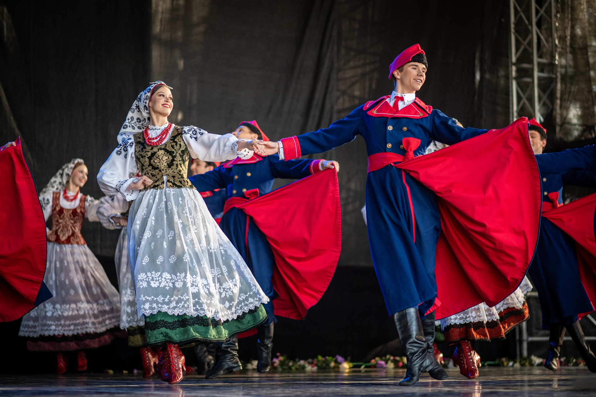 Przed naszym występem publiczność rozgrzała „Orkiestra Kurpiowska”, która była znakomitym przedsmakiem tego, co miało się jeszcze wydarzyć tego wieczoru. Gdy na scenę wkroczyli soliści, chór, balet oraz orkiestra zespołu „Mazowsze”, rozległy się gromkie brawa, które nasilały się z każdym kolejnym utworem. Nasi artyści pod dyrekcją Wojciecha Gwiszcza zaprezentowali „Kalejdoskop Barw Polski”, zabierając wszystkich zgromadzonych w barwną, muzyczną podróż.