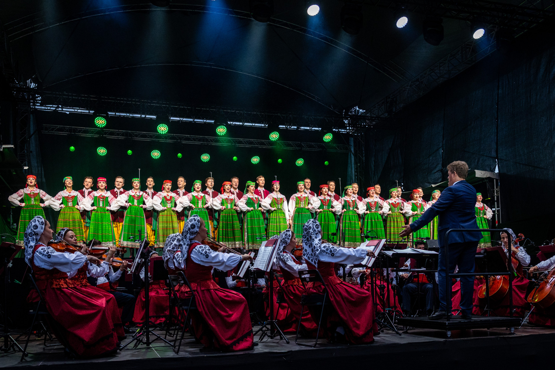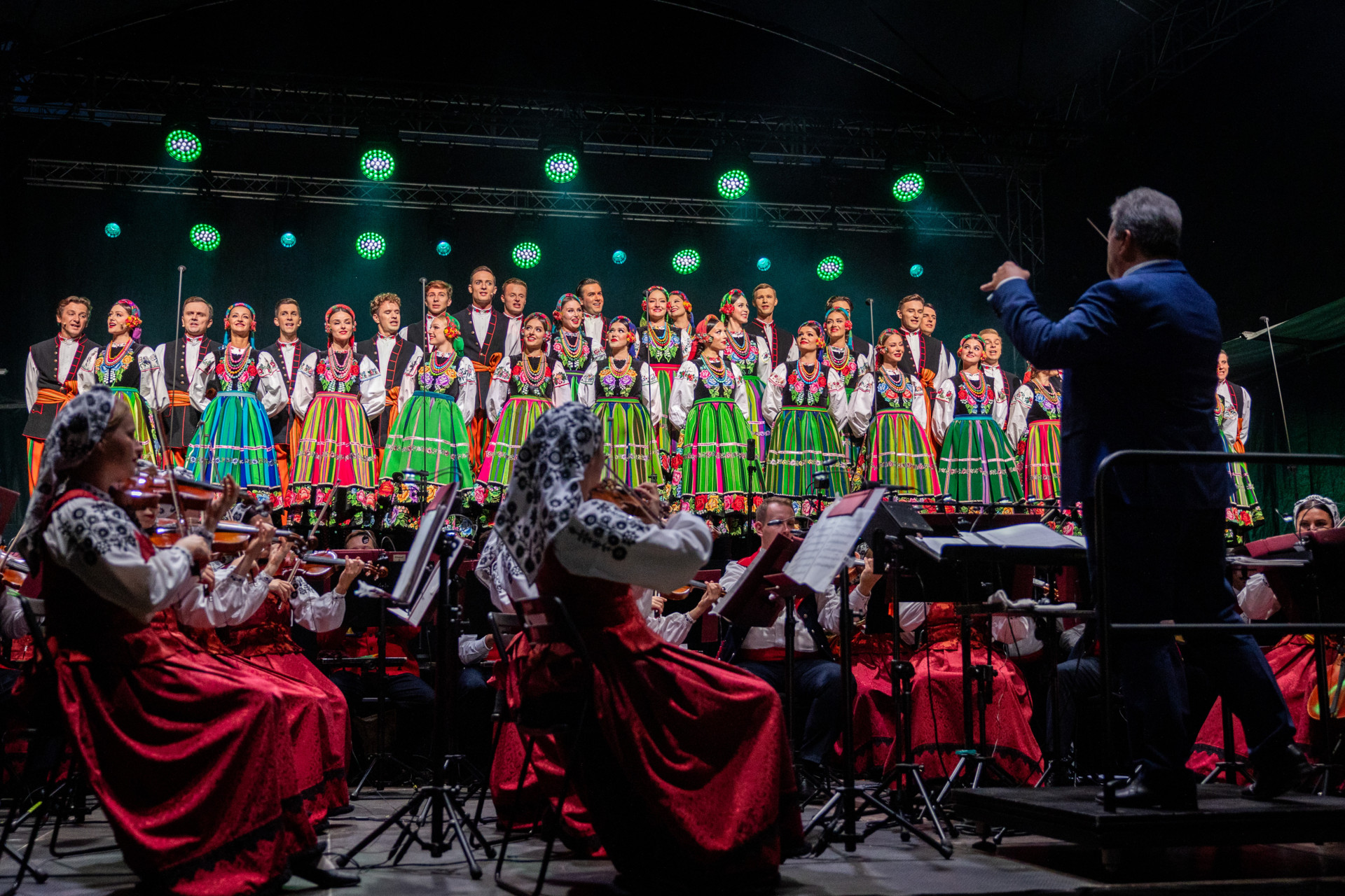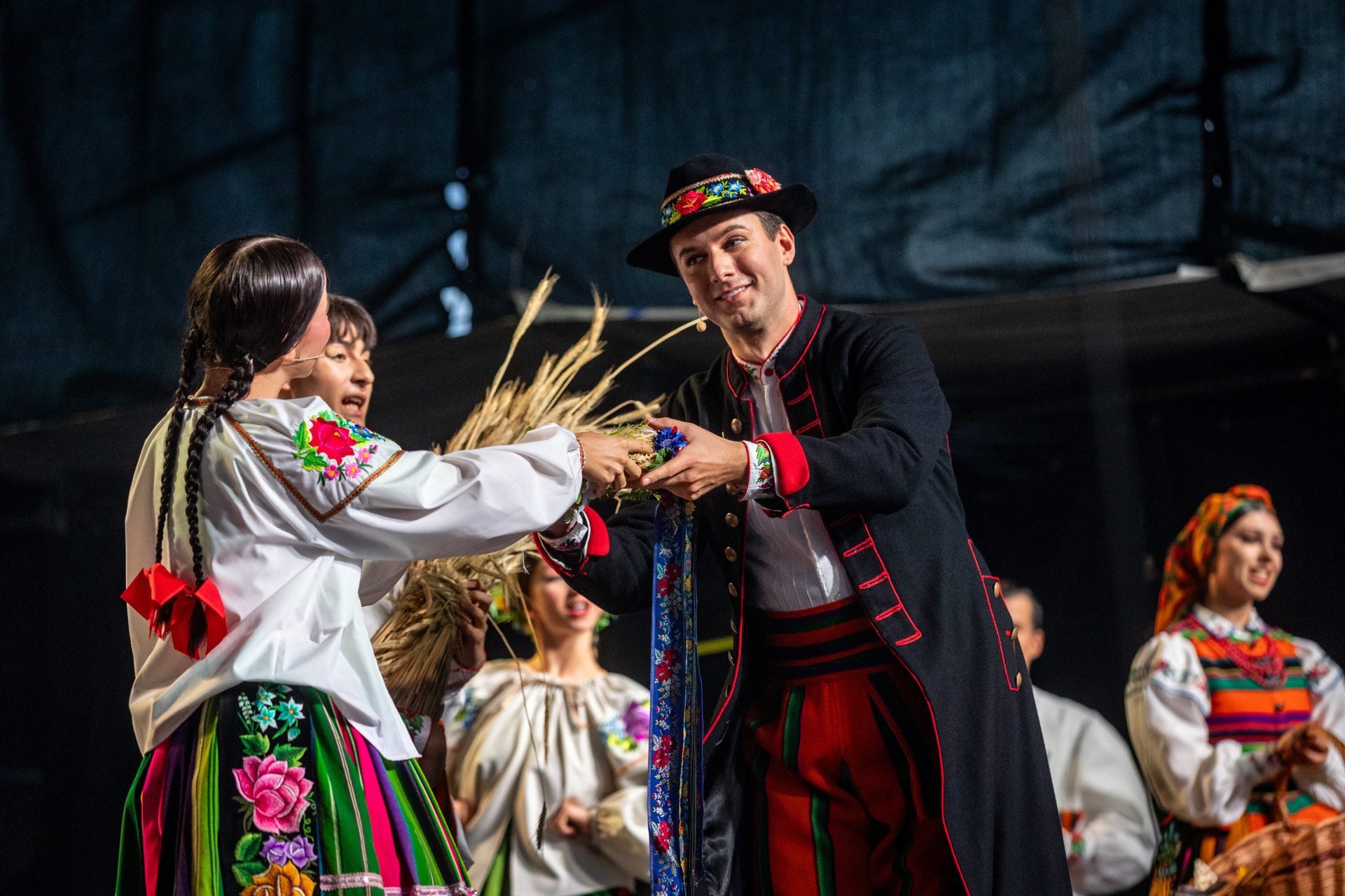 Zespół „Mazowsze” pod dyrekcją maestro Jacka Bonieckiego i Wojciecha Gwiszcza z radością włączył się w to wyjątkowe święto dziękczynienia za plony. Artyści zespołu zaprezentowali tradycyjny obrzęd dożynkowy, a następnie zabrali zgromadzonych w muzyczną podróż po Polsce.