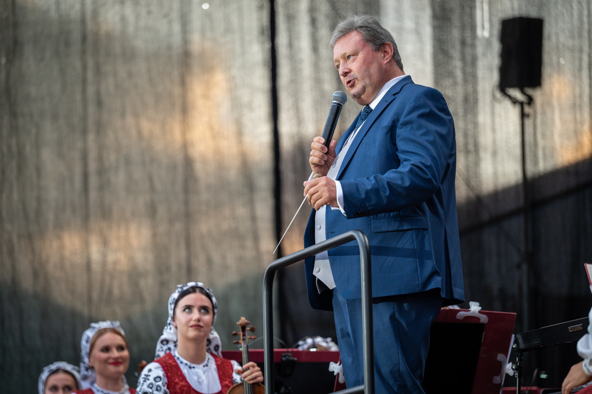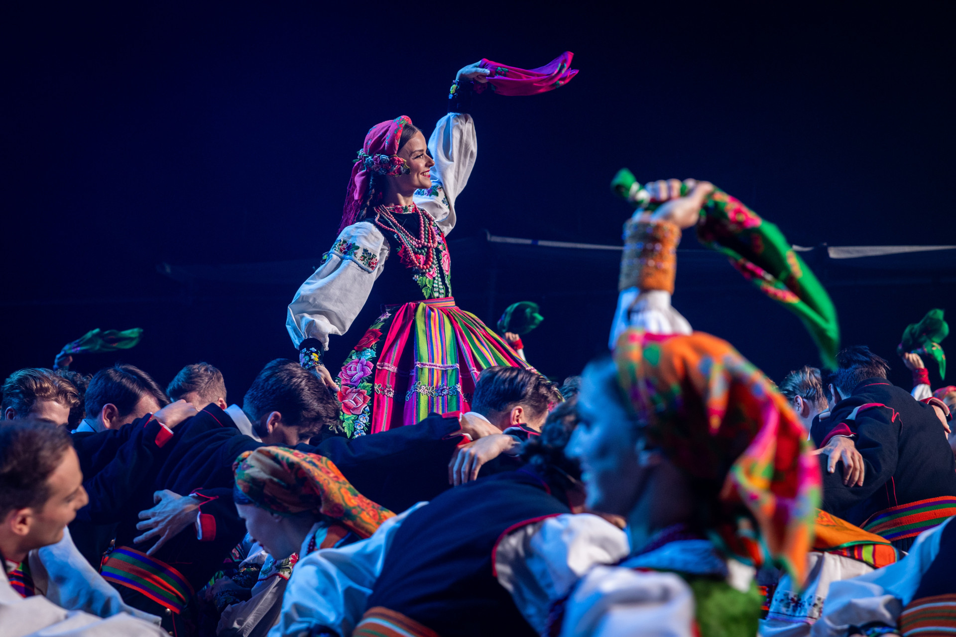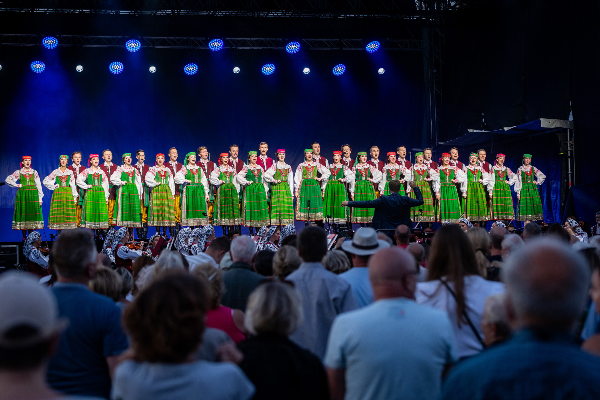 Zespół „Mazowsze” pod dyrekcją maestro Jacka Bonieckiego i Wojciecha Gwiszcza z radością włączył się w to wyjątkowe święto dziękczynienia za plony. Artyści zespołu zaprezentowali tradycyjny obrzęd dożynkowy, a następnie zabrali zgromadzonych w muzyczną podróż po Polsce.