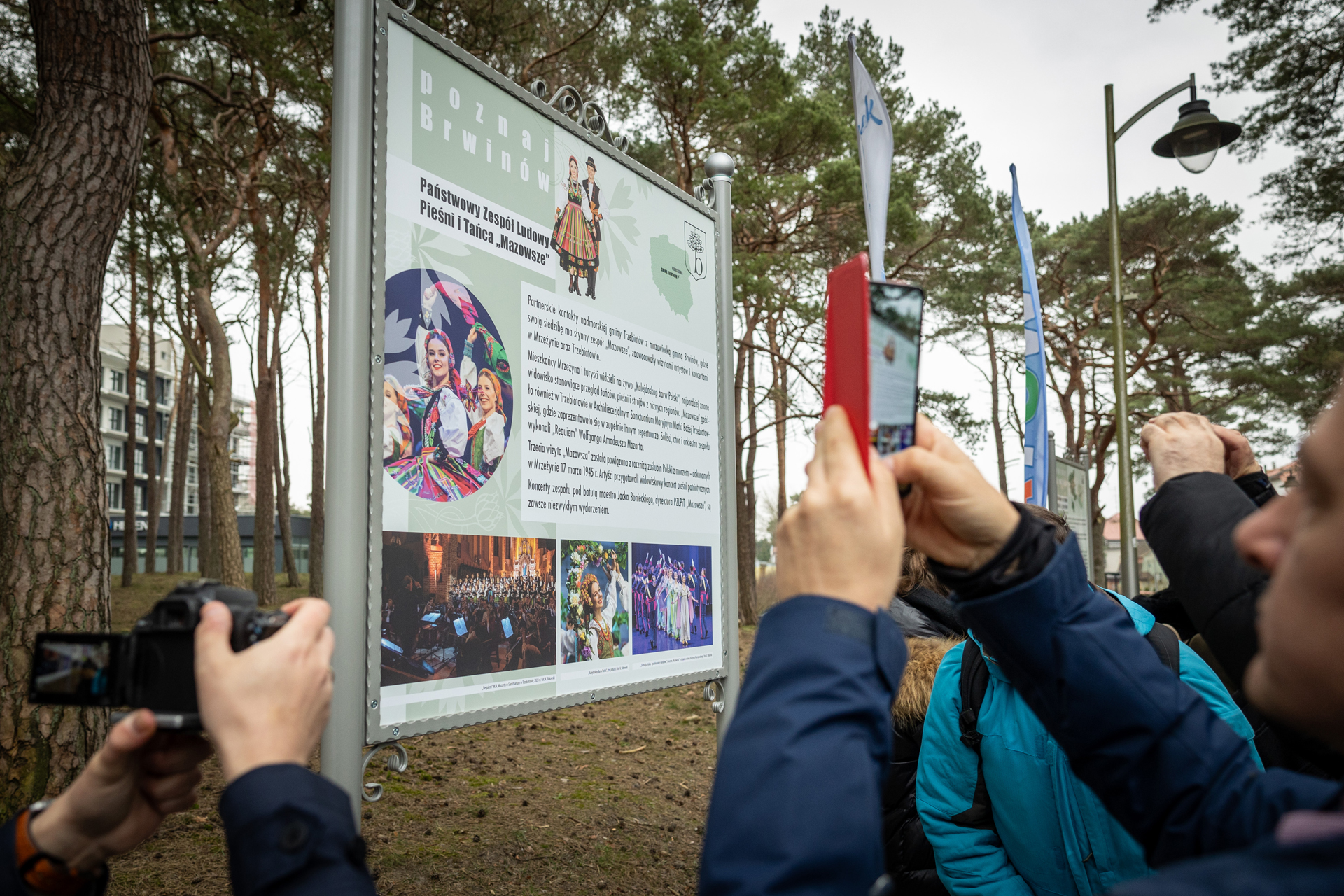 Zanim jednak zabrzmiały pierwsze dźwięki koncertu, uczestniczyliśmy w odsłonięciu tablicy poświęconej zespołowi "Mazowsze", która stanęła przy Alei Brwinowskiej w nadmorskim Mrzeżynie. Tak! Nasza gmina, jako jedyna w województwie mazowieckim, dzięki inicjatywie burmistrza Brwinowa Arkadiusza Kosińskiego, ma dostęp do morza.