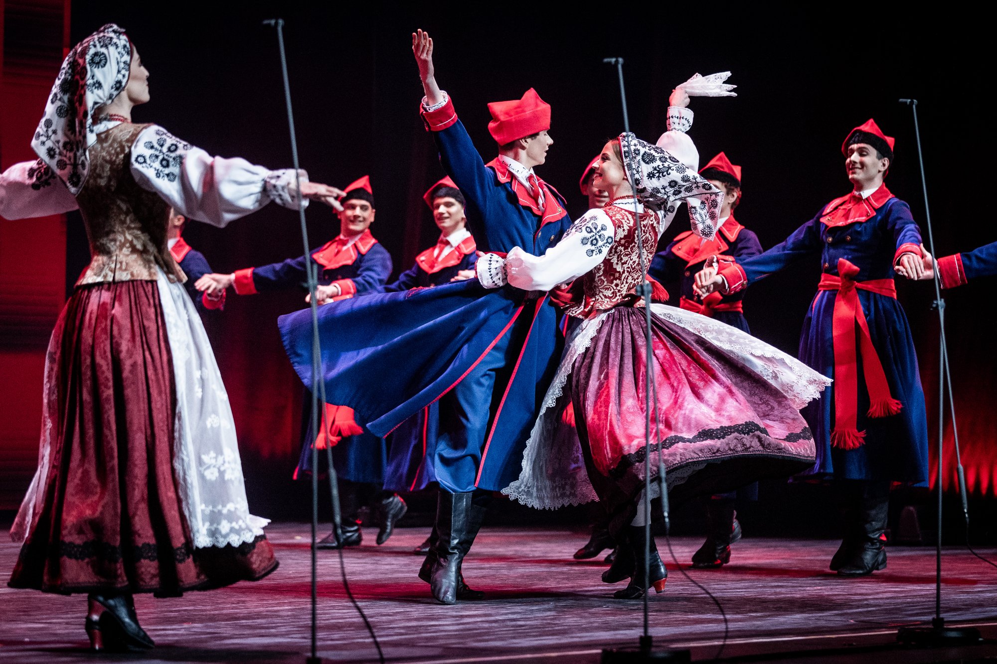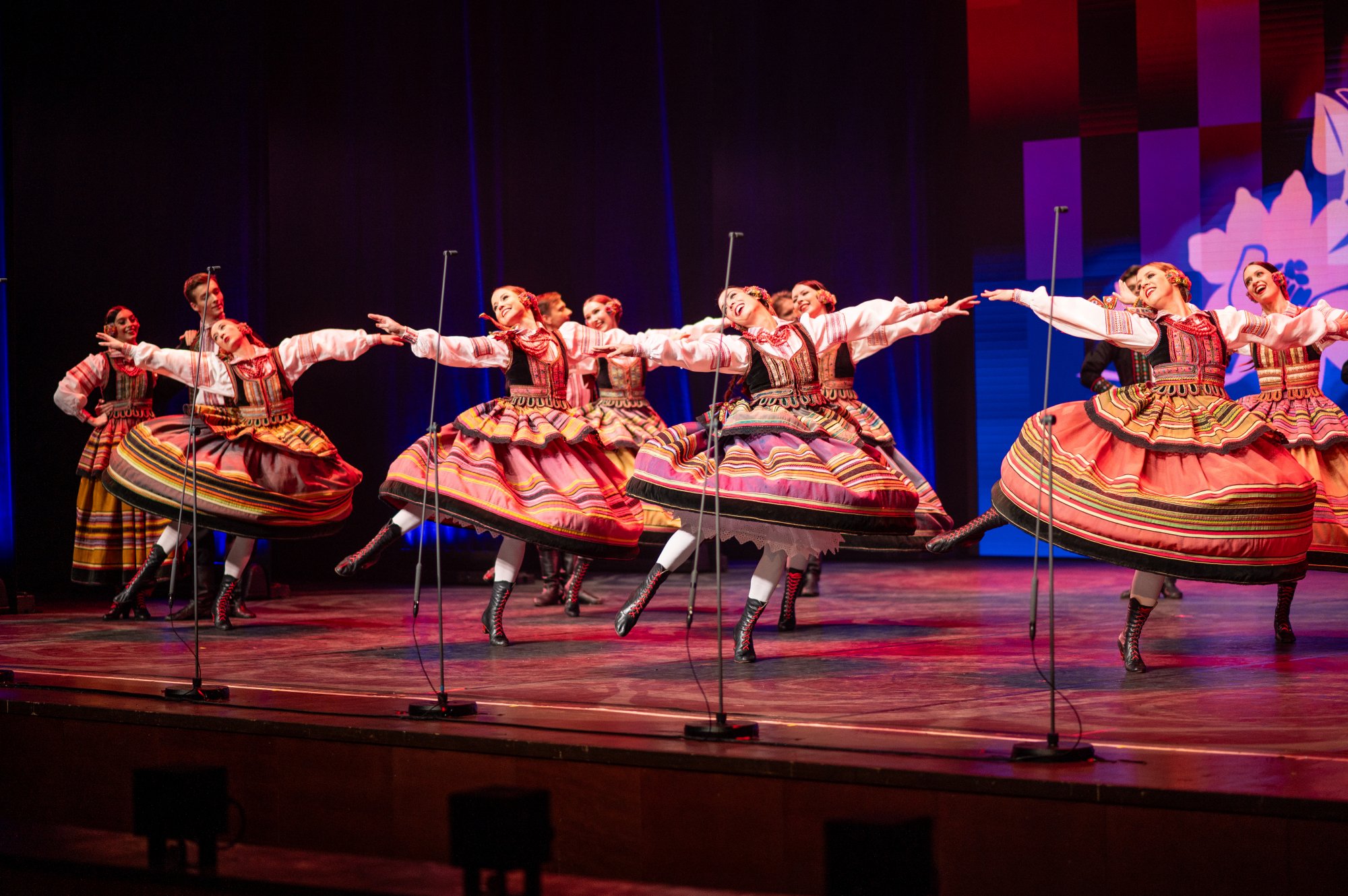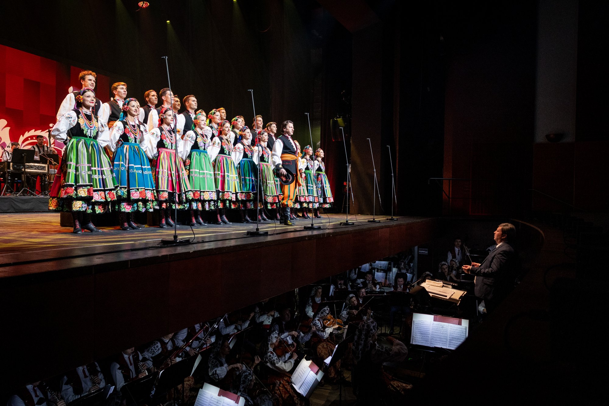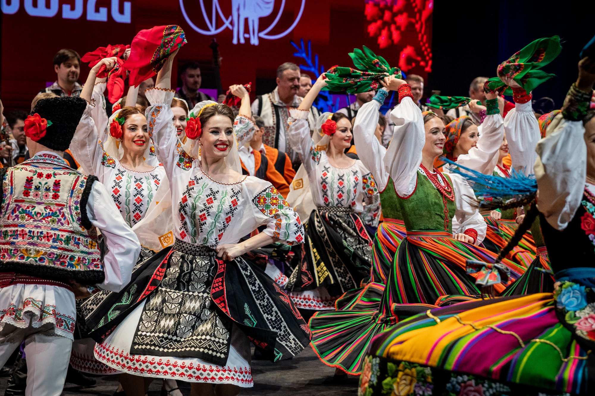 Widowiskowe choreografie, wirtuozeria ruchu i barwne kostiumy porwały Publiczność w podróż pełną pasji. "Mazowsze" pod dyrekcją Jacka Bonieckiego oraz „JOC” pod dyrekcją Marina Gherasa pokazali, jak pięknie różne tradycje mogą współbrzmieć na jednej scenie.