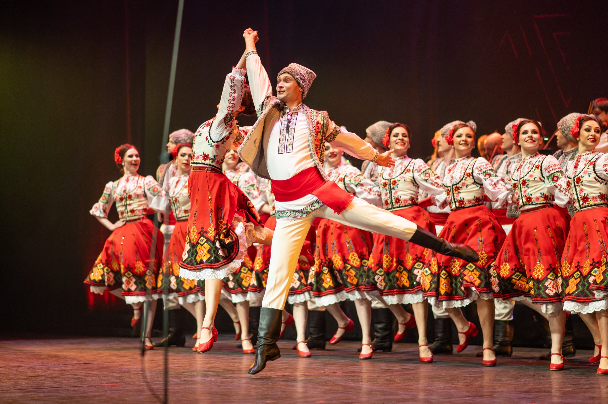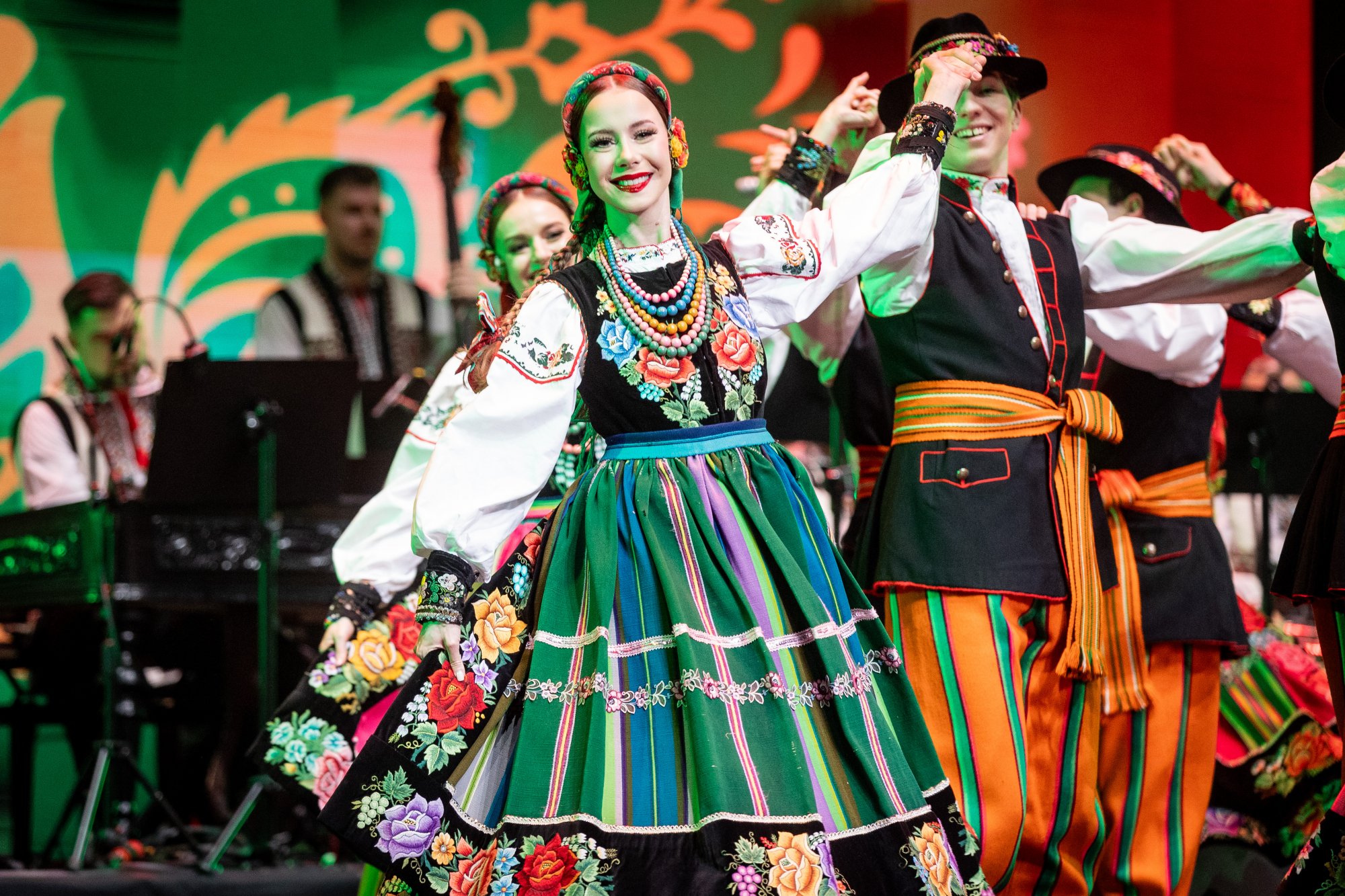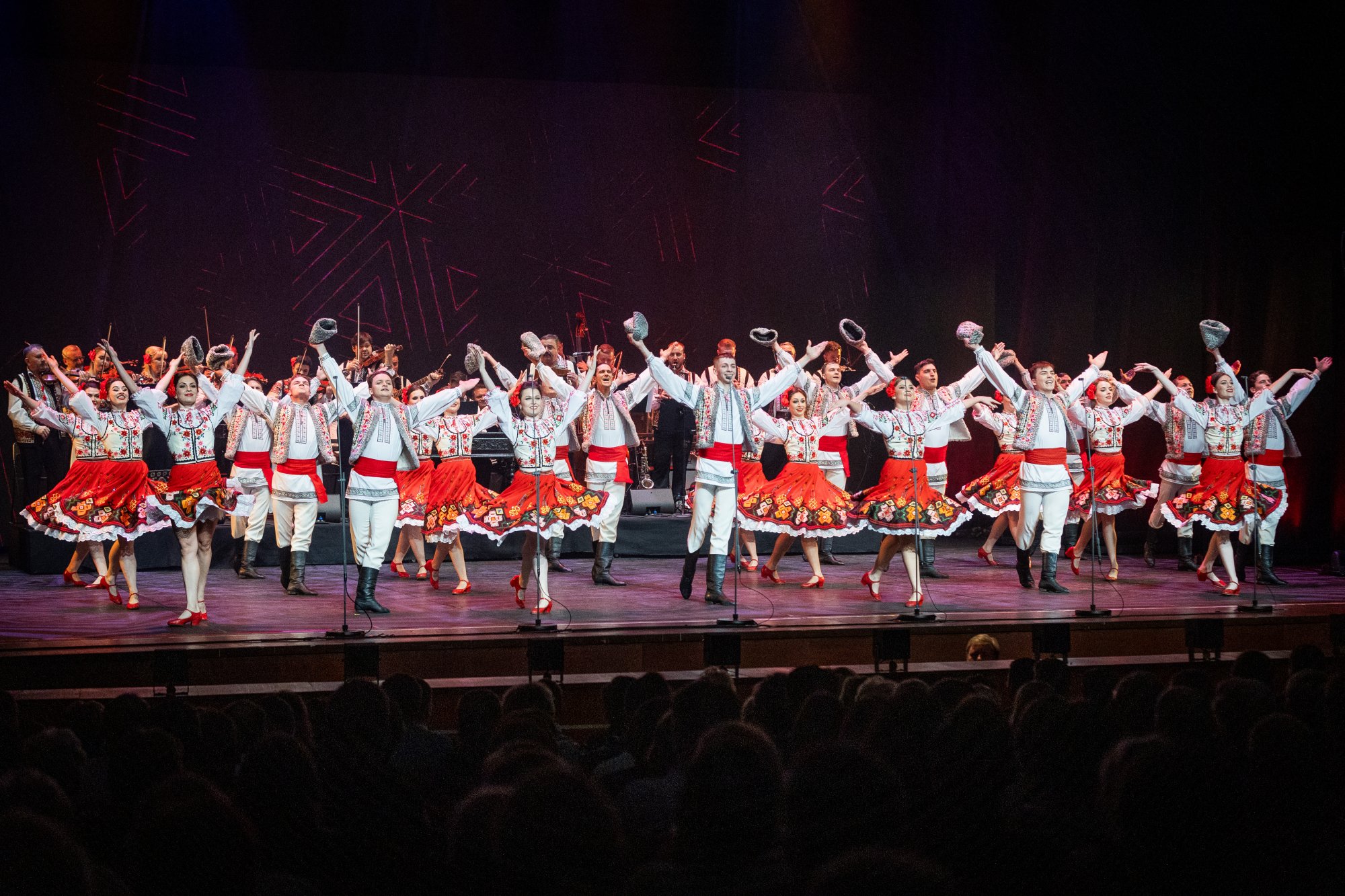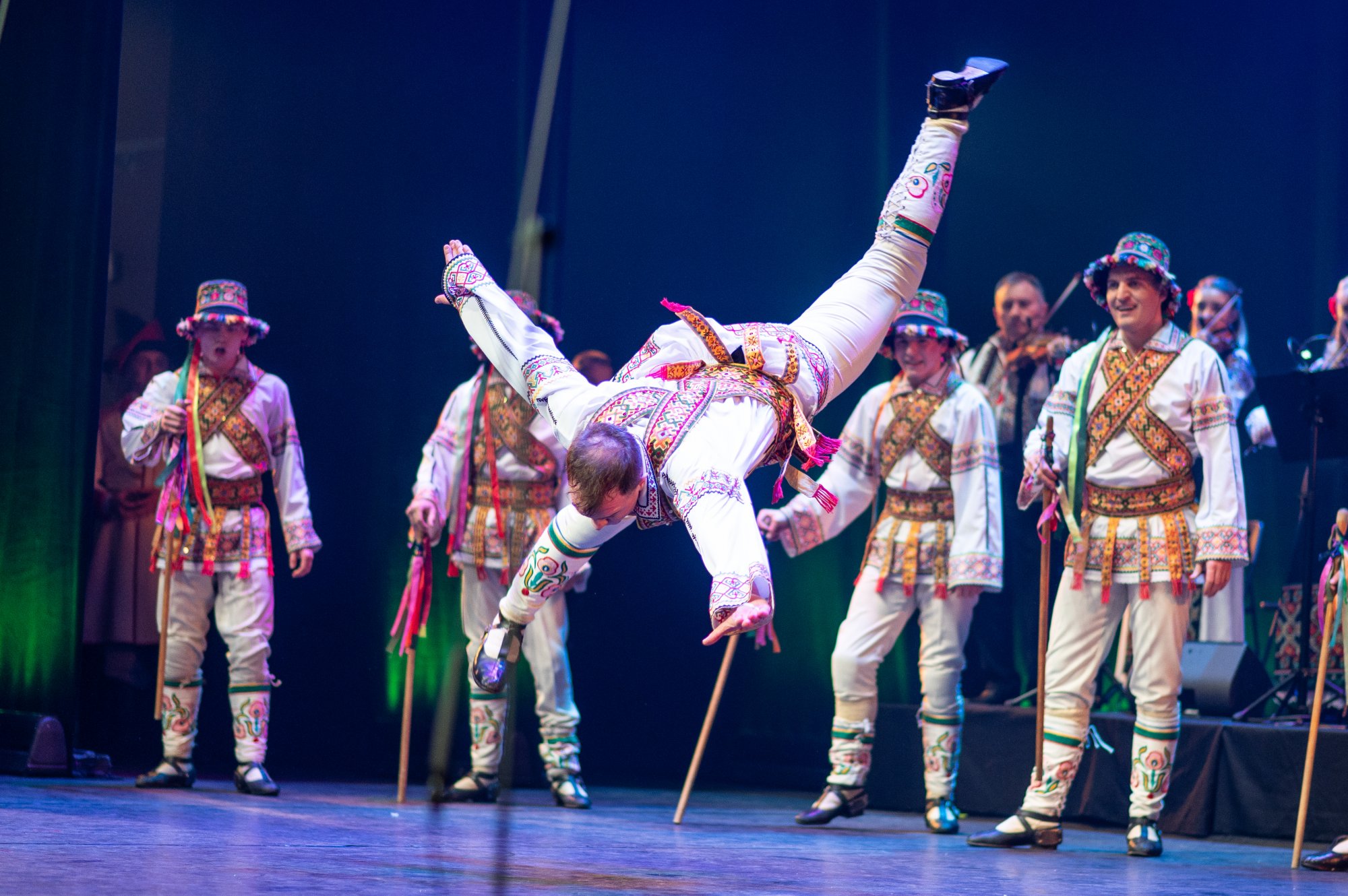 Widowiskowe choreografie, wirtuozeria ruchu i barwne kostiumy porwały Publiczność w podróż pełną pasji. "Mazowsze" pod dyrekcją Jacka Bonieckiego oraz „JOC” pod dyrekcją Marina Gherasa pokazali, jak pięknie różne tradycje mogą współbrzmieć na jednej scenie.